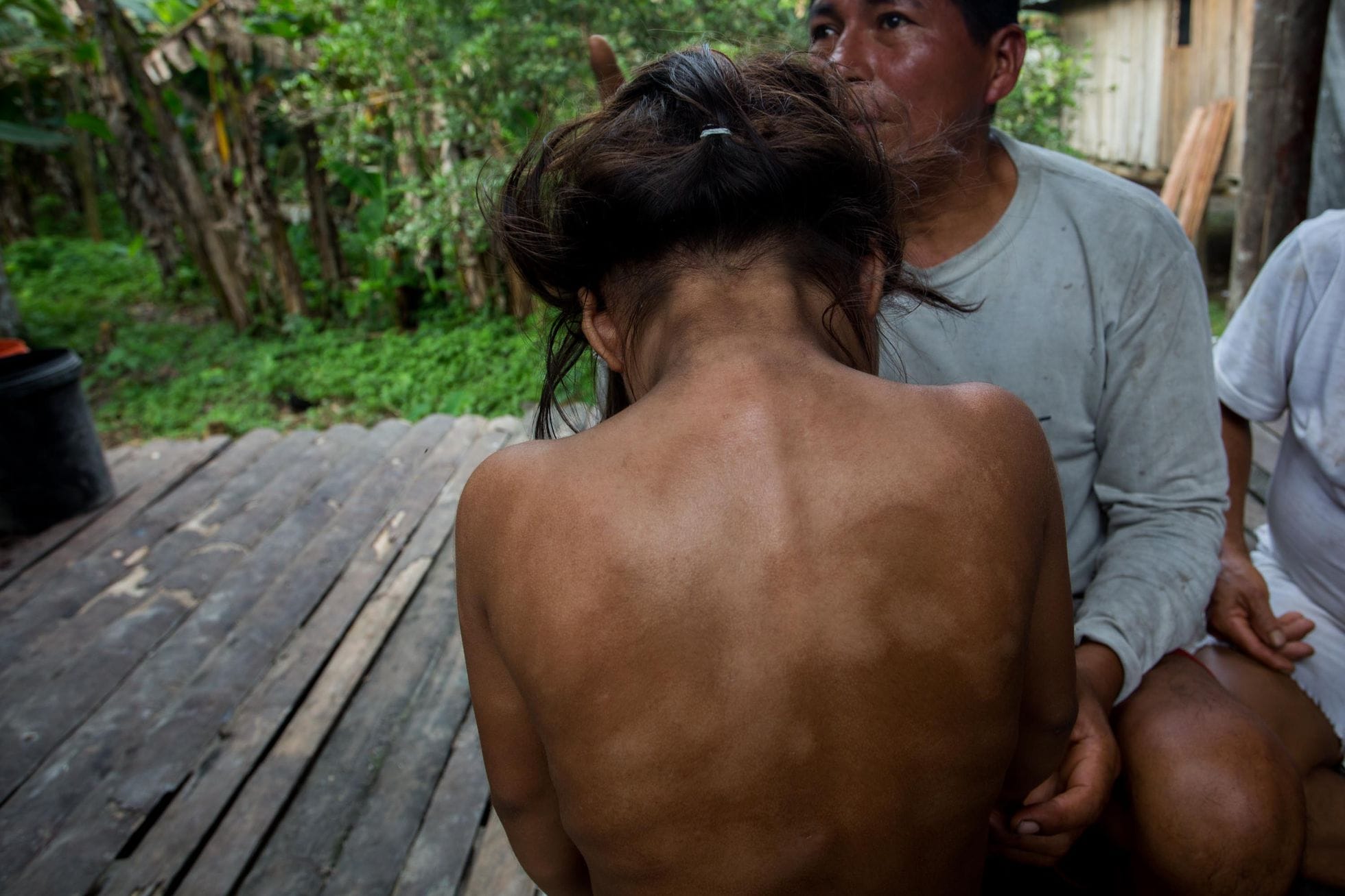 Children from 60 communities have such issues with their skin. “The oil stains are for life. We demand that the state repair the damage it caused by its lack of attention. Those who are paying the price are the members of the community. No more impunity or injustice!” said Carlos Jipa, community leader and president of the Federation of United Communes of the Ecuadorian Amazon.