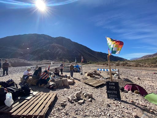 The image of another Kolla woman from Jujuy also appeared across major media outlets in June. Verónica Chávez, president of the Tres Pozos Sanctuary Community, posed with James Cameron, the world-famous film director and environmental activist, holding a handmade sign reading “Communities Salinas Grandes – Laguna Guayatayoc”. The sign referred to the 33 Indigenous communities in the Salinas Grandes – Laguna Guayatayoc watershed, which spans the provinces of Jujuy and Salta.