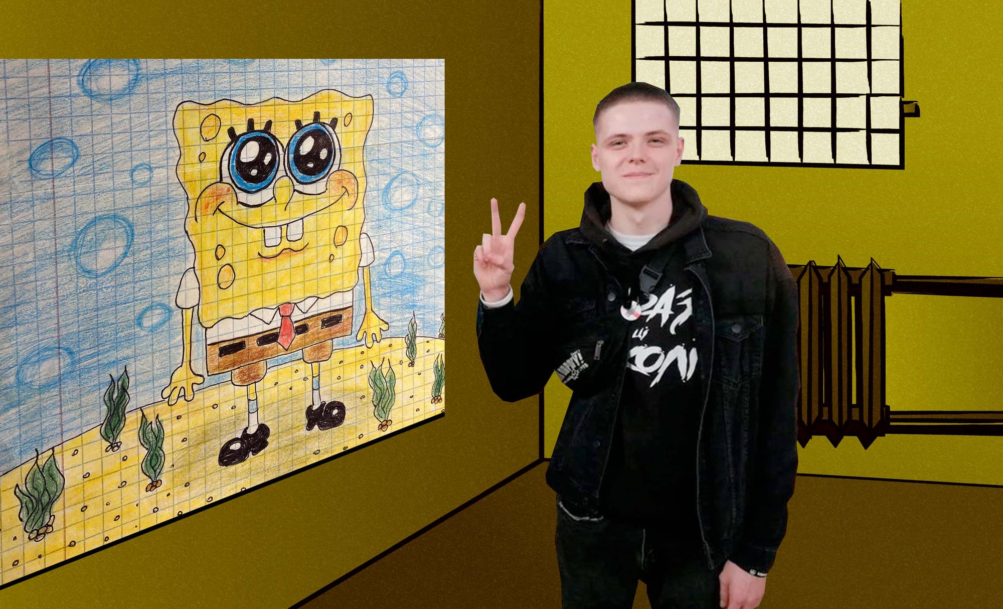 Ivan Krasousky, an anarchist, was sentenced to three years of open prison for participating in the post-election protests of 2020-21. After receiving a postcard from a penpal, Darina, Krasousky sent back a drawing of SpongeBob SquarePants. “Your postcard is UNBELIEVABLY cool! It cheered us up no end!” he wrote. Krasousky’s penpal says she cannot remember what she originally sent.