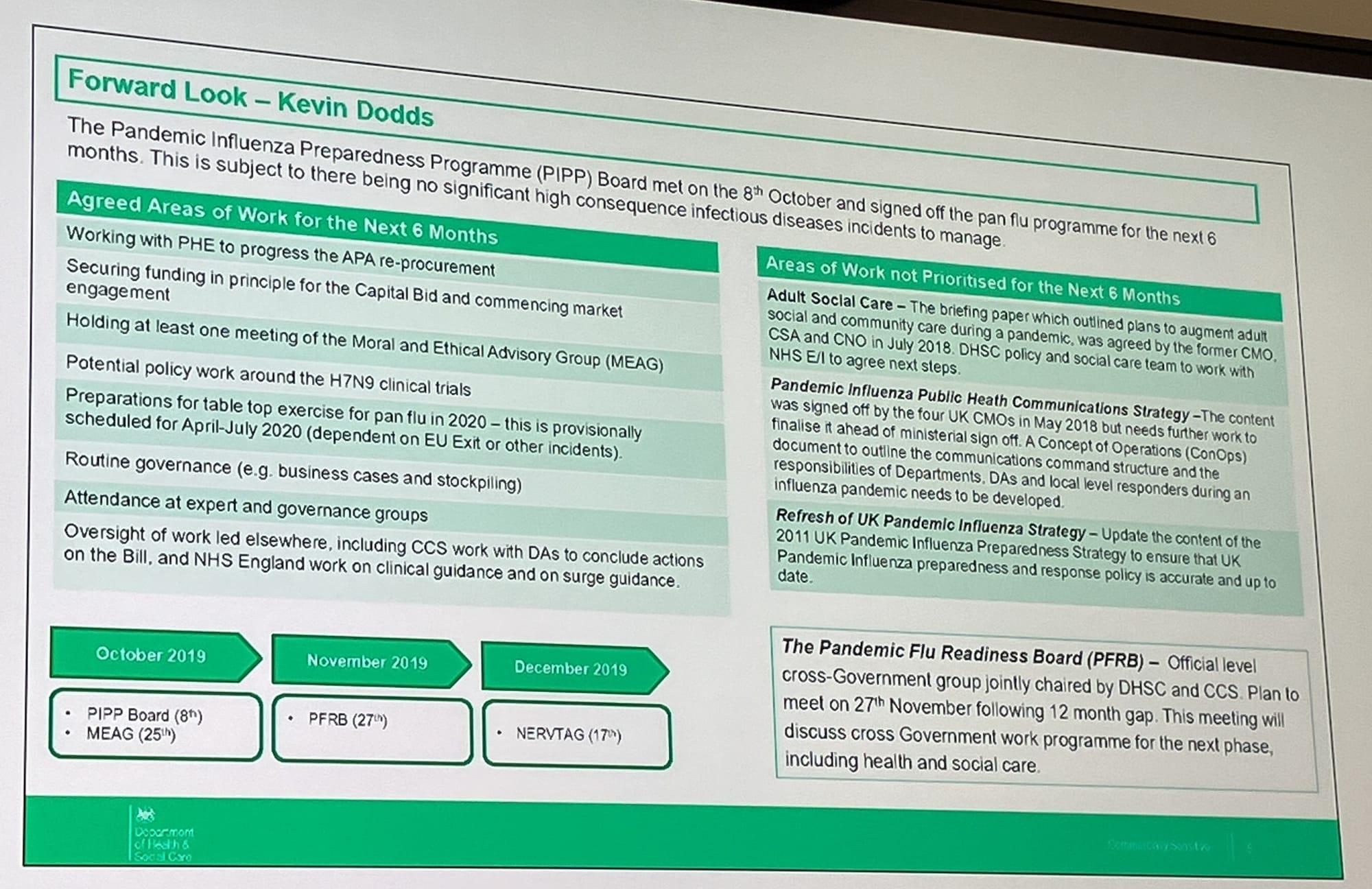 On Monday, the inquiry was shown a document from the Pandemic Influenza Preparedness Programme (PiPP) board from November 2019 – months before the first coronavirus cases were recorded in the UK – which listed adult social care top in a list of “areas of work not prioritised for the next 6 months”.