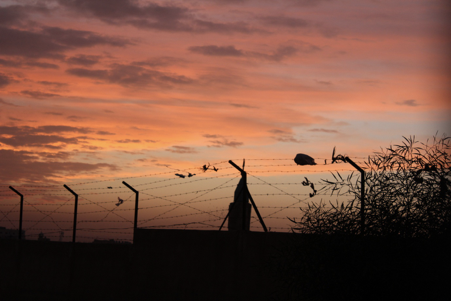 The photos the girls took show birds flying in the distance, raindrops and sunsets against steel bars, fences and barbed wire.