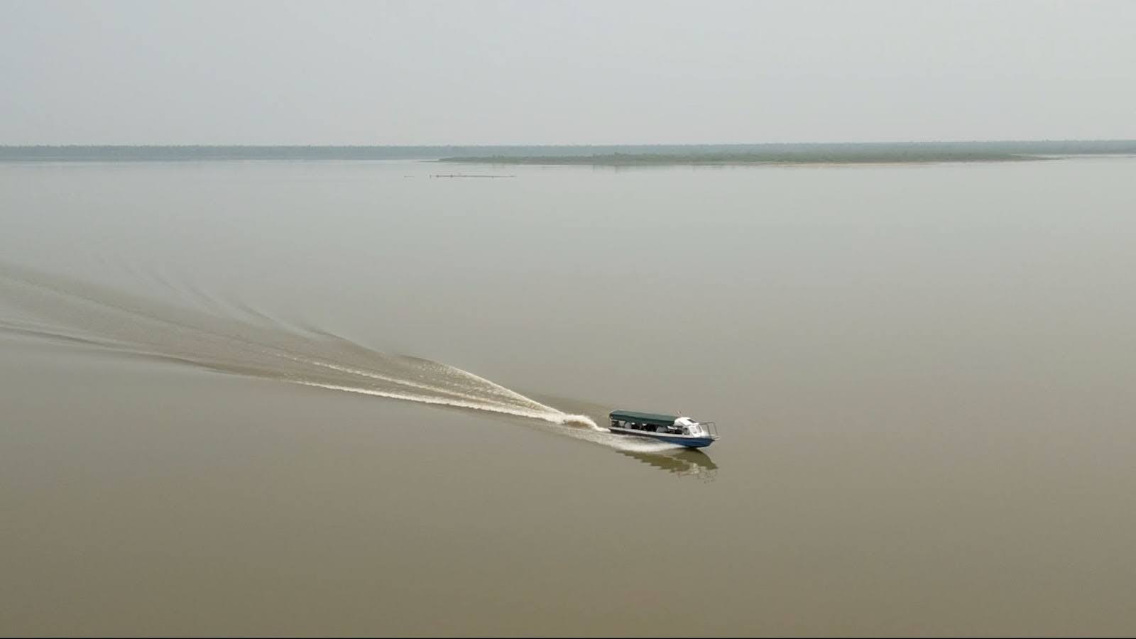 With the boat’s engine damaged, the expedition barely makes it to Lagunas, a village 300 kilometres away in the department of Loreto. The next day, we rent a new barge and make the arduous journey up the river to reach San Lorenzo, continuing on the Pastaza River and arriving at Lake Rimachi, one of the largest lakes in the Amazon, where the Kandozi Indigenous people live.