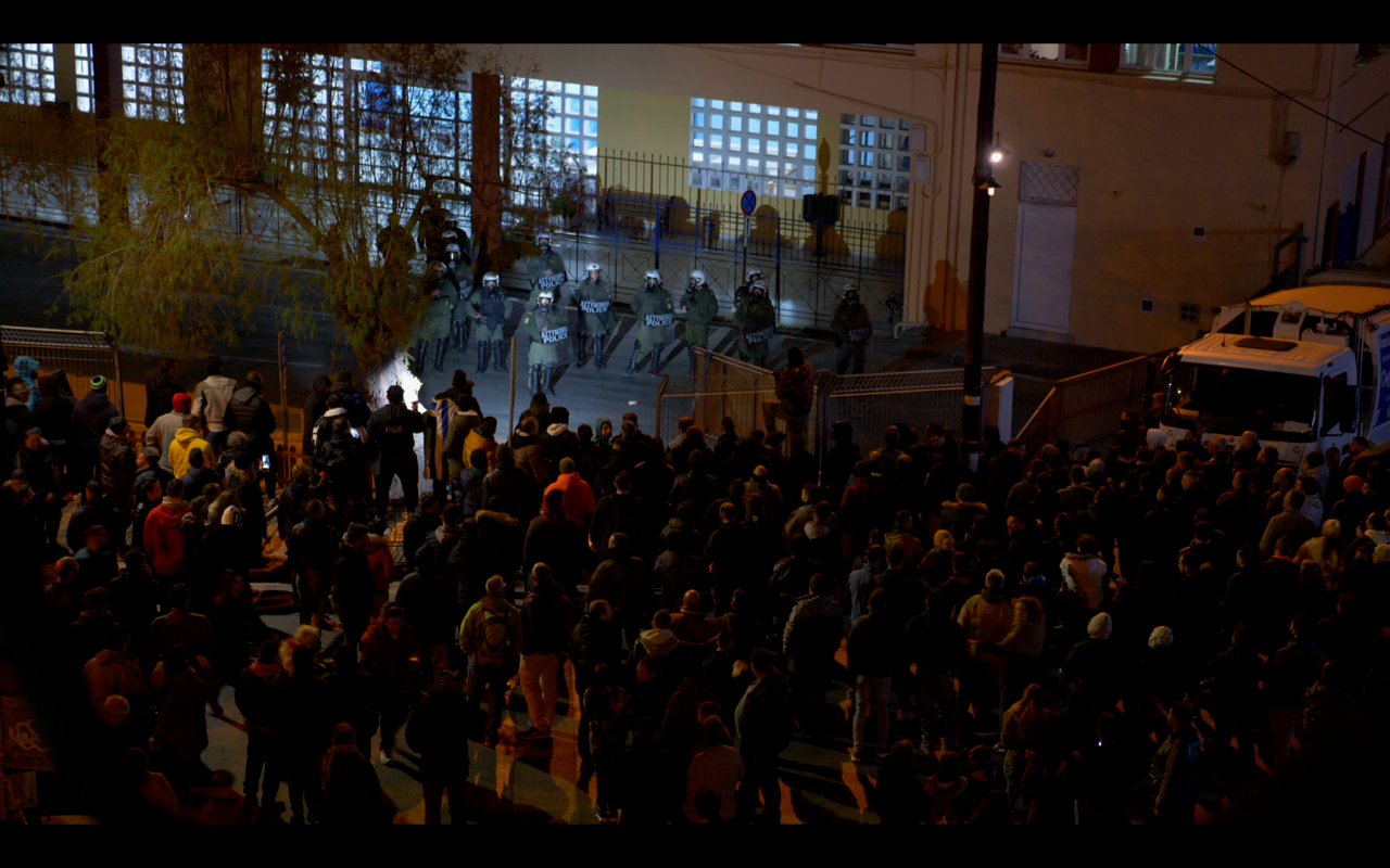 Faced with steadfast local opposition, the new conservative government was always frugal with any exact details about the new camps. There are still no definite answers as to how many thousand refugees they will house. Even the exact locations of the new camps were announced only a week ago, when it was also announced that the government would confiscate the public land that the camps will be built on to avoid lengthy legal procedures. The winning bidders for the construction contracts (TERNA in Chios, AKTOR in Lesvos, and MYTILINAIOS in Samos) were announced a few hours after the landing of the riot police – all three are the usual suspects, responsible for most large public construction projects since the 1990s.
