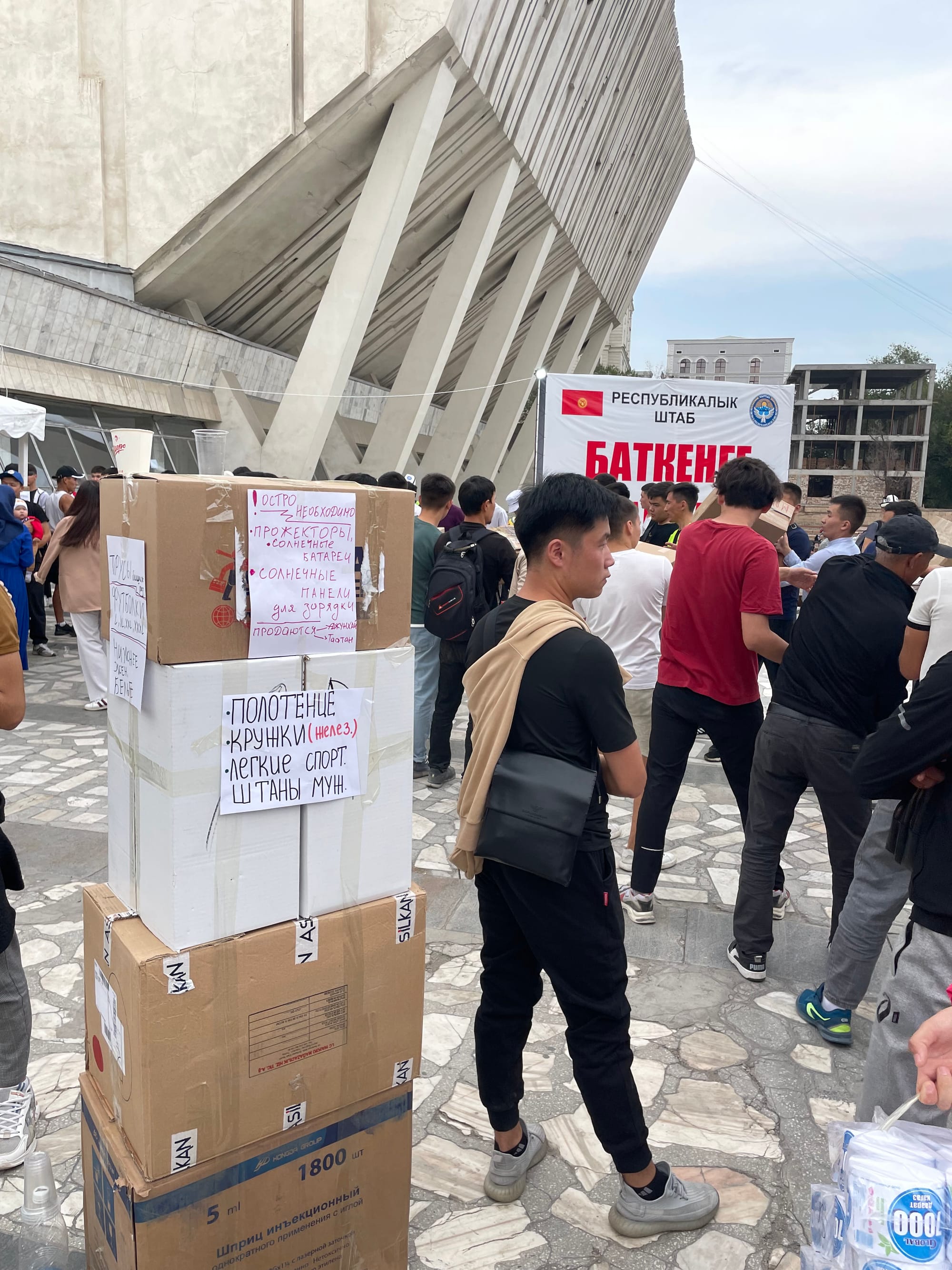 As the aid effort led by a coalition of volunteer organisations gathered pace, Kyrgyzstan’s government designated Bishkek’s Sports Palace as the central hub for aid collection, opening up other collection points throughout the city.