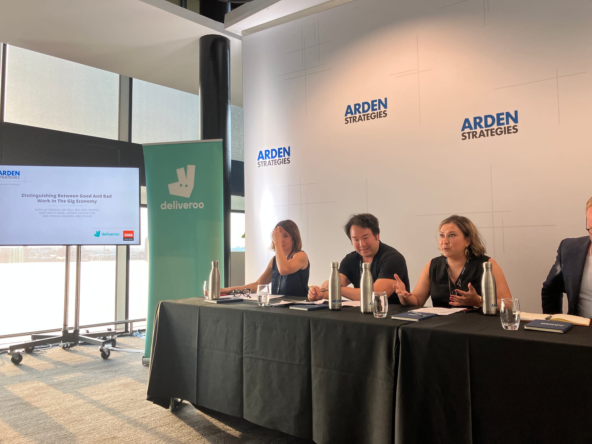 The event, titled ‘Distinguishing between good and bad work in the gig economy’, featured a panel with Labour’s shadow work and pensions secretary Liz Kendall alongside Will Shu, the founder and CEO of Deliveroo, as well as a representative from the GMB union and the Tony Blair Institute.