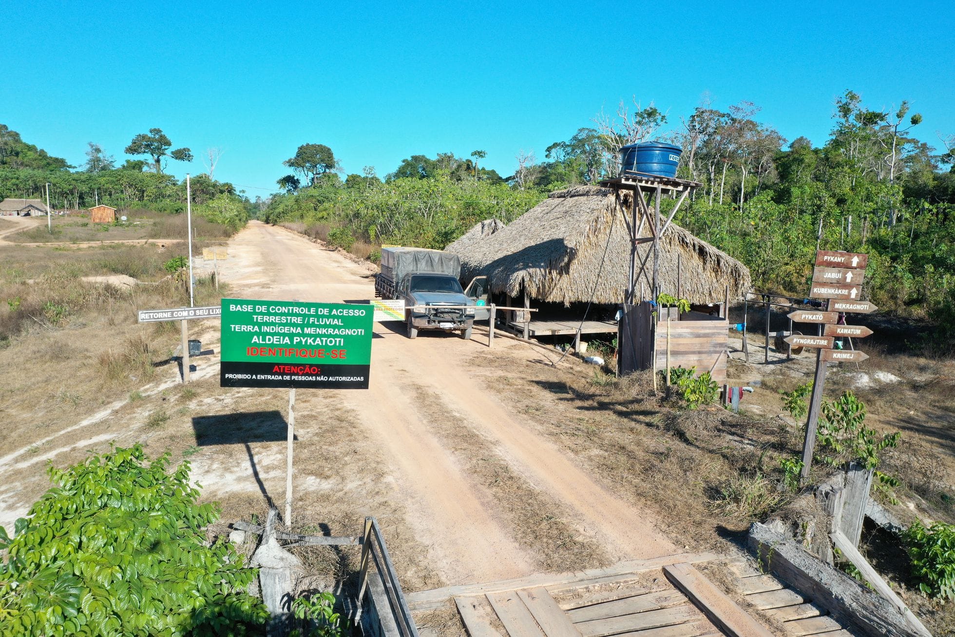 To try to control the encroachment of logging, predatory fishing, and other threats, we have set up a monitoring base on the edge of the Menkragnoti IL, in the village of Pykatoti.