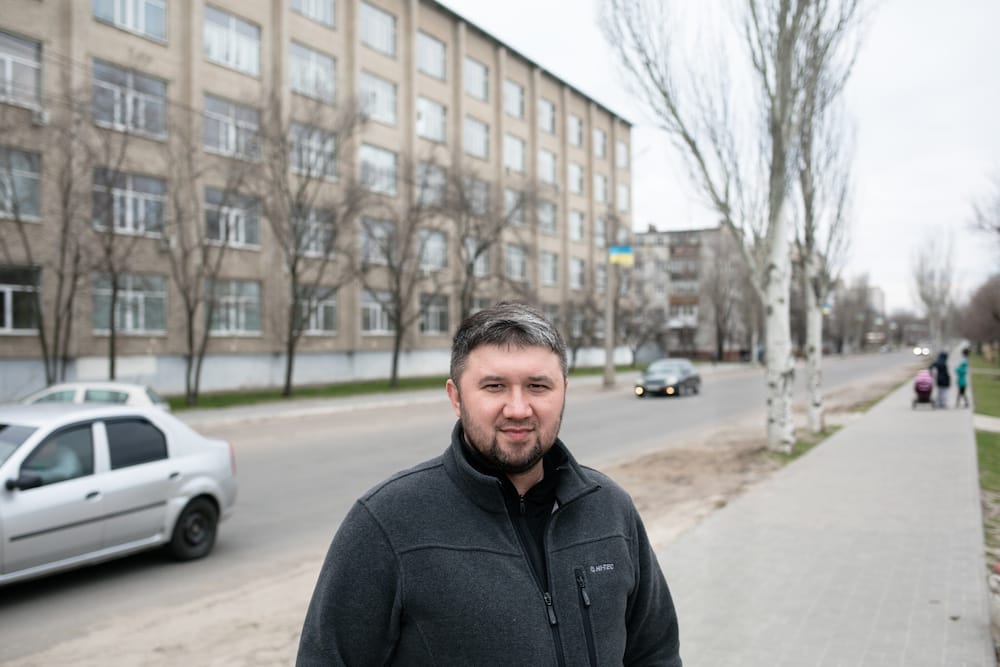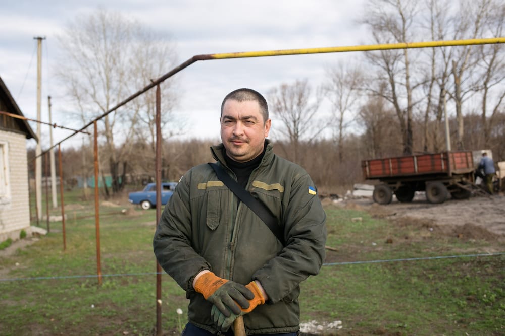 “A total of 480 people live in these two villages, and those affected have received compensation both for financial loss and for injury,” says Oleg Kurilov, head of the village. Kurilov himself was born in Novoaydar, a larger town nearby. At the beginning of the war with Russia in 2014 he went to the front as a volunteer, then he served in the armed forces of Ukraine for two years. We meet Kurilov outside the local store, as he’s mixing concrete and mending a fence.