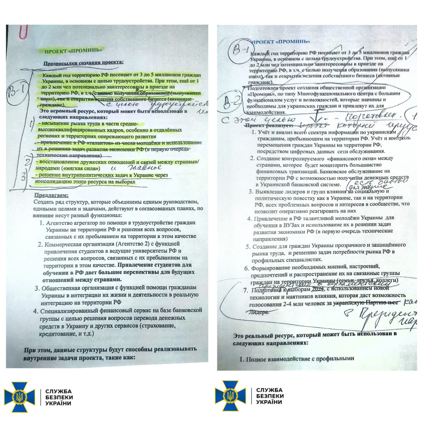 Among other items in Medvedchuk’s email account, the SBU found notes on a new political project (‘Lightbeam’ – Promin in Ukrainian), which was meant to work in tandem with the FSB (Russia’s modern equivalent of the KGB) and Russia’s presidential administration to improve perceptions of Russia among Ukrainian expats. This is the basis of the second count of treason against him and Kozak.
