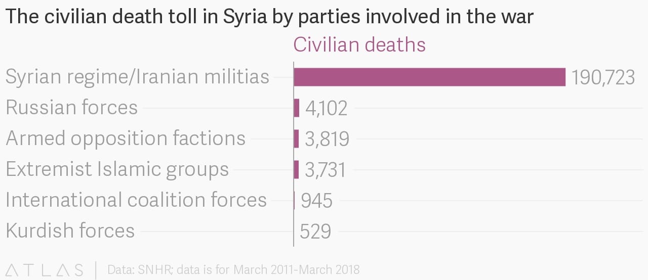 Unfortunately, Iran’s state propaganda line on the Syrian war has been bought by far too many western activists and journalists across the political spectrum; as a result, few, if any, of the articles on sanctions (whether in favor of or against them) have not even bothered mentioning how Iranian and Iranian-backed occupation forces continue to prop up the Assad regime, responsible for the overwhelming majority of civilian deaths in Syria. With or without the U.S.-led sanctions, Iran’s mobilization of a transnational Shi’a army in support of Assad has remained one of the few constants throughout the Syrian war and a key driver of the very Sunni extremism that Iran claims to combat in the Levant.