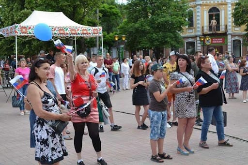 The newly occupied territories enjoy a busy schedule of public holidays. In June, the occupiers scored something of a PR coup on Russia Day, nearly filling the main squares in many rural towns and villages. There may be an element of coercion at play: mayor Yana Litvinova of Starobilsk, who was forced out by occupying forces, claims that teachers have to attend public festivals at risk of losing their jobs. But photos from the event, with enthusiastic crowds including Russian flag-waving teenagers, suggest that coercion does not fully explain it.