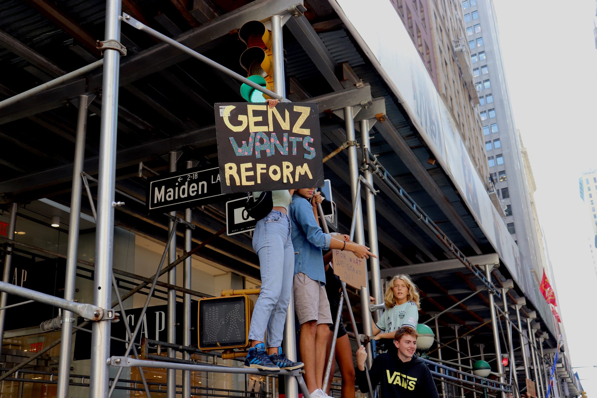 Marching through the canyons of Wall Street, the protest had a distinctly anti-capitalist flair. As the crowd passed Zuccotti Park, the site of the Occupy Wall Street movement nine years prior, an older gentleman asked the adolescent strikers: “do you remember Occupy?”