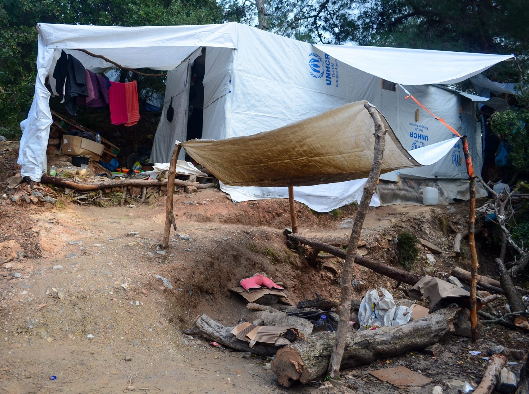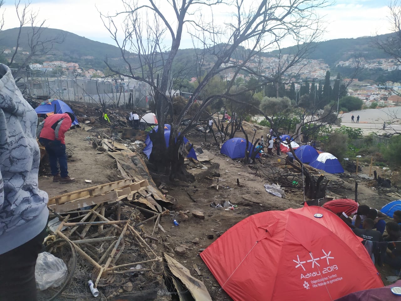 The situation in the jungle has been made even more difficult by a series of natural and man-made disasters. On 30 October, a 7.0 magnitude earthquake hit the island, destroying many buildings and triggering a mini-tsunami that flooded the town of Vathy.