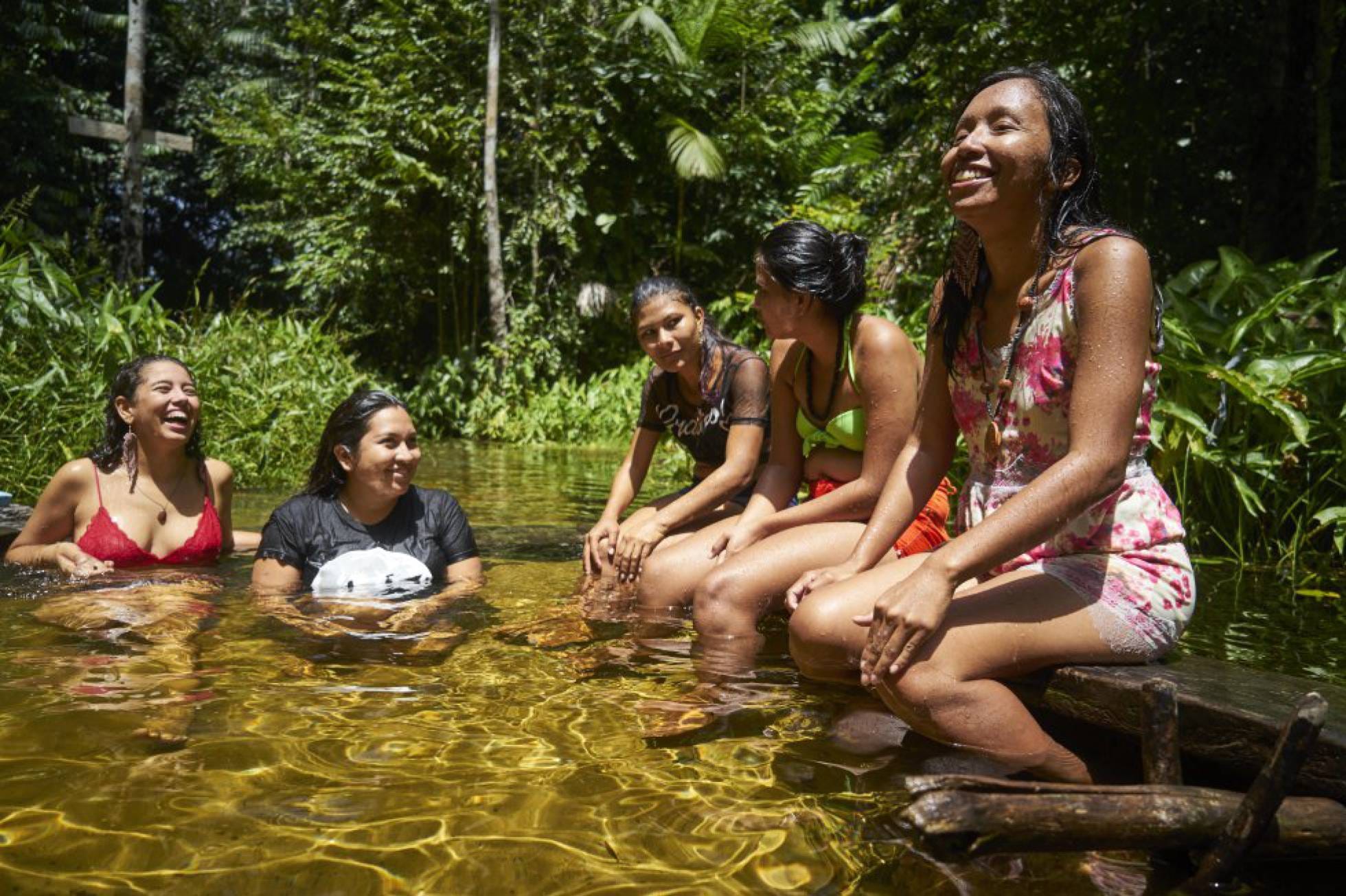 Tupi talks to her friends whilst they bathe in the river. Pablo Albarenga