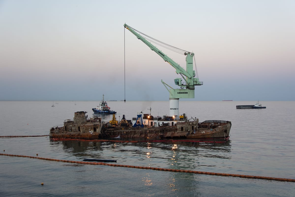 The tanker was also a talking point in the city. Questions were asked – if rarely answered. Who was responsible for the Delfi’s sinking? Why was it allowed to pollute a beach for ten months? Who ought to pay the 14-million-hryvnia (£365,000) bill for its eventual removal? Who owned it?