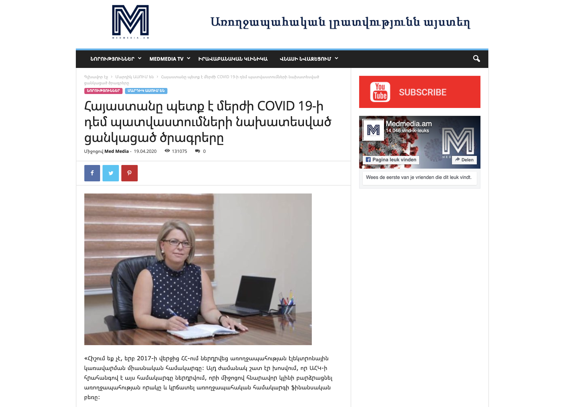 Grigoryan added – in contrast to the message in some of Medmedia.am’s most popular articles: “Our website is also ready to cooperate with and implement a programme aimed at increasing the coverage of vaccinations in our country.”