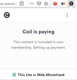 - A user visits an article page whilst having a payment wallet active on their browser (e.g. Coil). The wallet is set up to automatically pass a micropayment to the article’s publisher when the user visits.