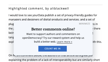 3) When you visit participating articles, Coil shares micropayments with openDemocracy and the author – it's currently about $0.36/hour. It will also reward other websites and creators in the micropayments ecosystem when you visit their content.