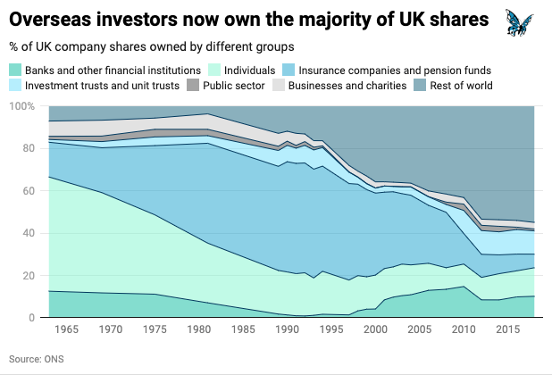 In a new report published by Common Wealth this week, we tracked this concentration of ownership in the 350 largest corporations in the UK (the FTSE350) over the past 20 years, asking what it means for the governance of 'UK PLC'. We found that a full fifth of the total value of the FTSE350 is controlled by just ten investors. While this may not seem enormous at face value, compare it to a simple analogy: if these corporations were a small country, 20% of its entire voting power would be controlled by just ten citizens among thousands – hardly a democratic arrangement. Then imagine those same ten citizens also had a similar degree of control in hundreds if not thousands of other countries, and the picture becomes less democratic still.