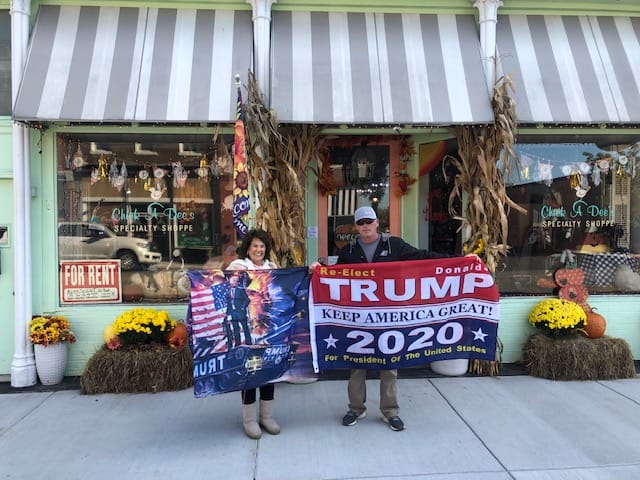 Up on Main Street, I met Jeremy and his mother-in-law Elma. Three generations of their family had gathered to wave the Trump truck convoy as it rolled by.