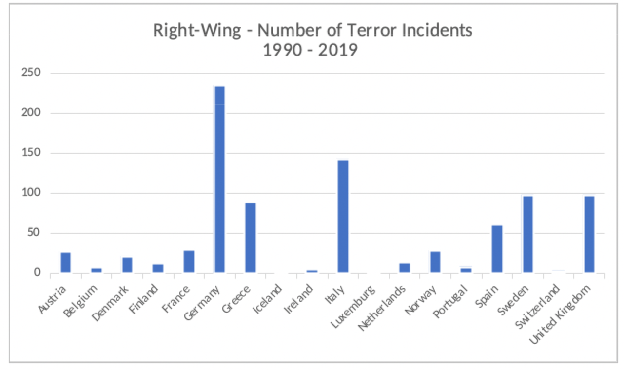 The countries of western Europe varied in terms of how often they were the sites of right-wing terrorist attacks. As displayed in Table 3, Germany, Greece, Italy, Sweden, and the United Kingdom stand out.