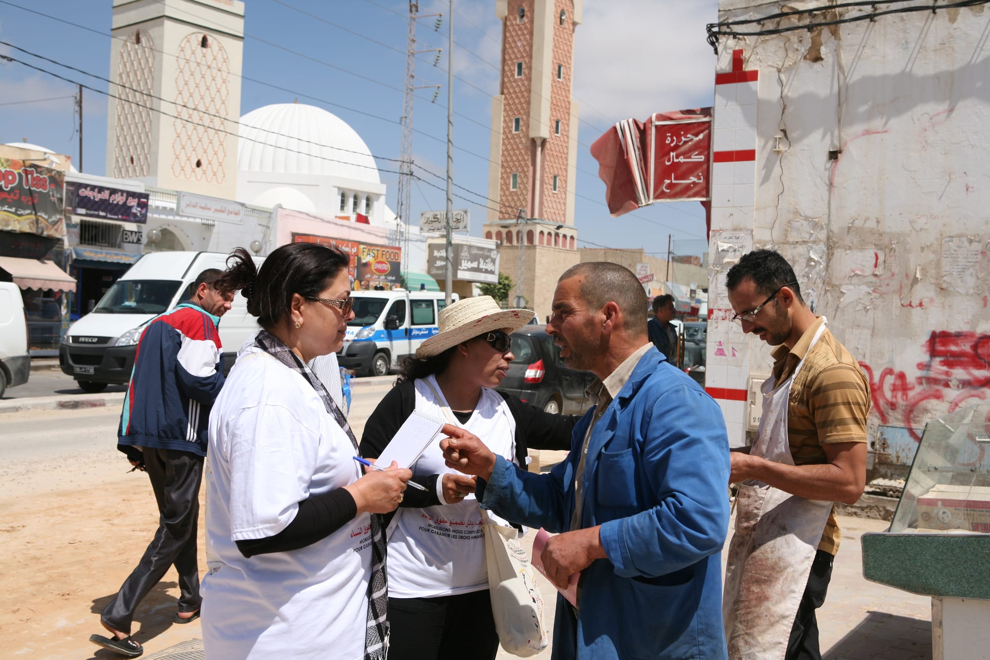 The caravan started on 2 May 2014 and visited the Tunisian cities of Monastir, Kairouan, Kasserine, Sidi Bou Zid, Sfax, Medenine and Al Rudayyif, ending its two-week journey on the eastern island of Djerba. Activists visited these communities to discuss and advocate for human and women’s rights in markets, schools, local associations and farms.