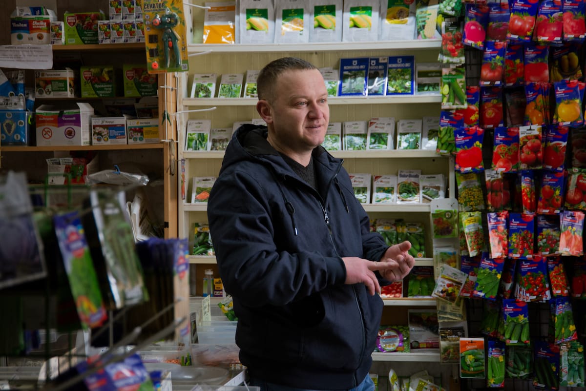 “Last year, trade was boosted by IDPs. This year income has dropped by 60%. People are waiting to see what will happen next,” says Kamill Harakhonych, 44, the owner of a small seed shop at Mukachevo central market.