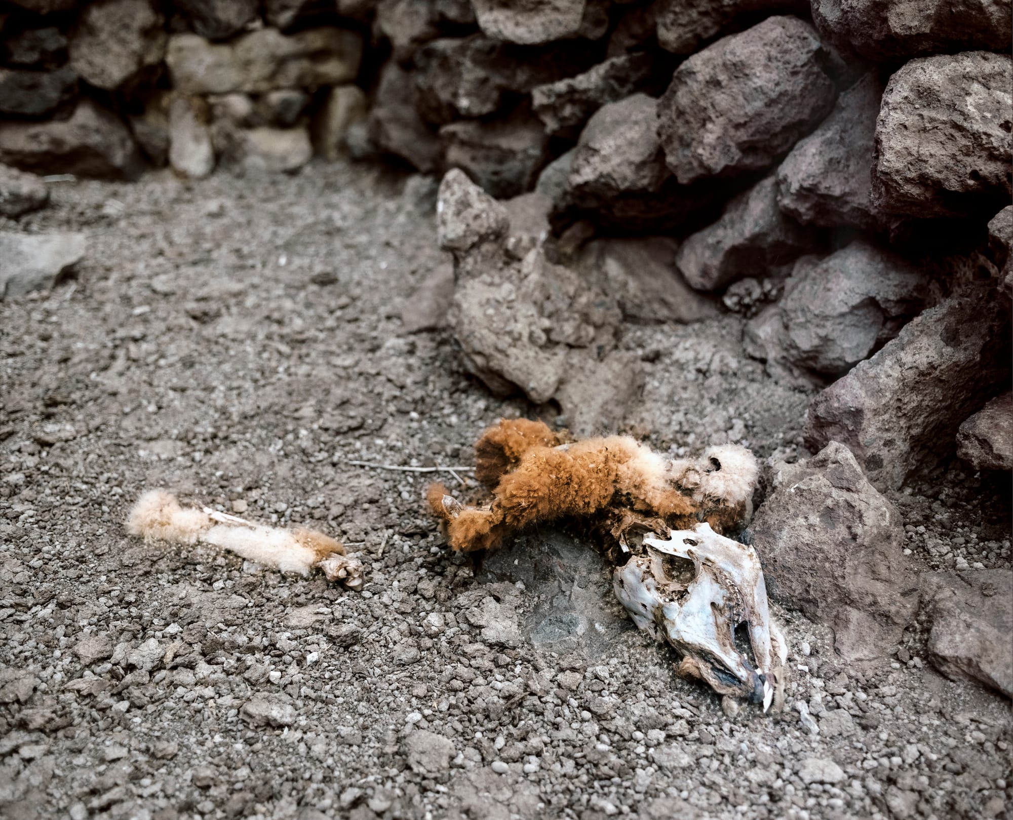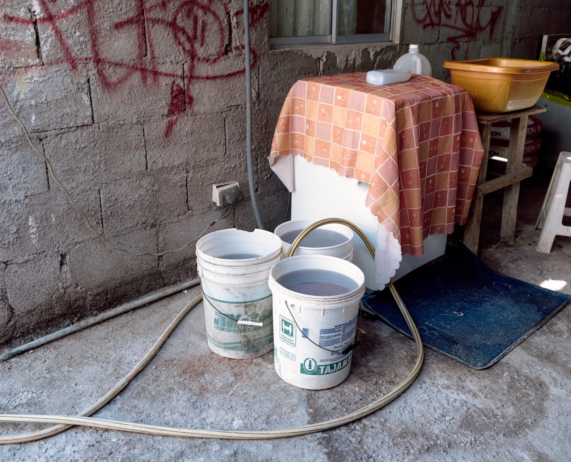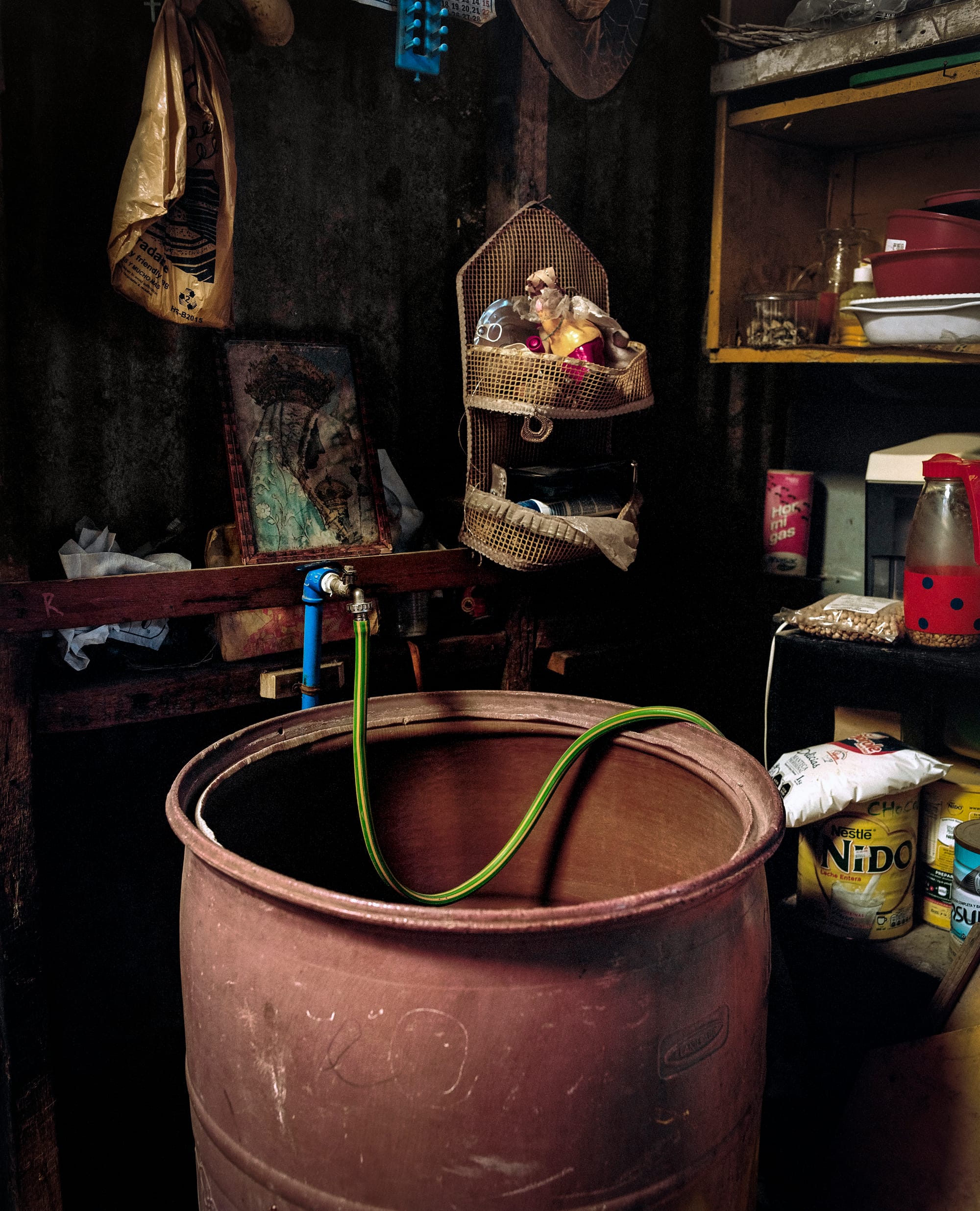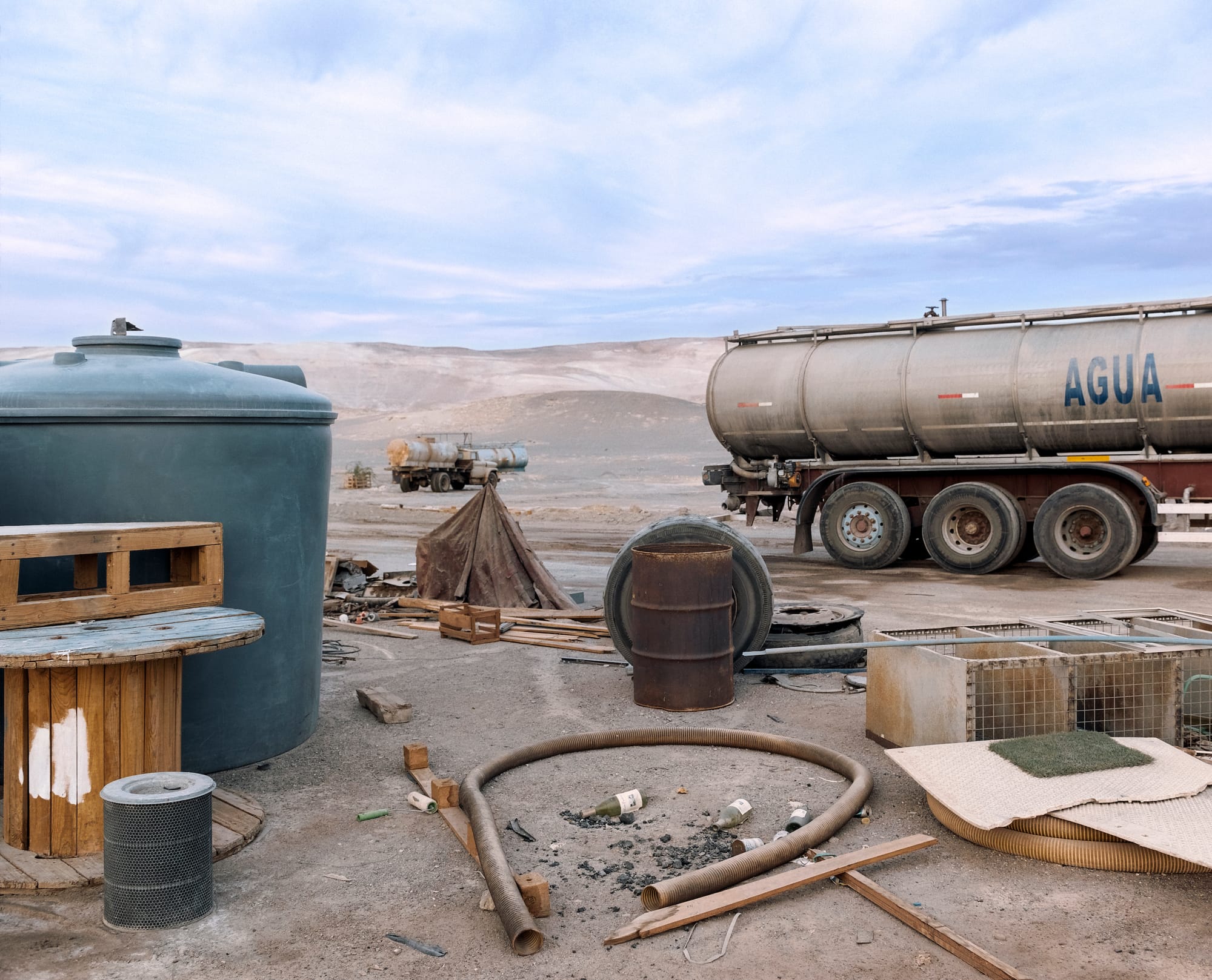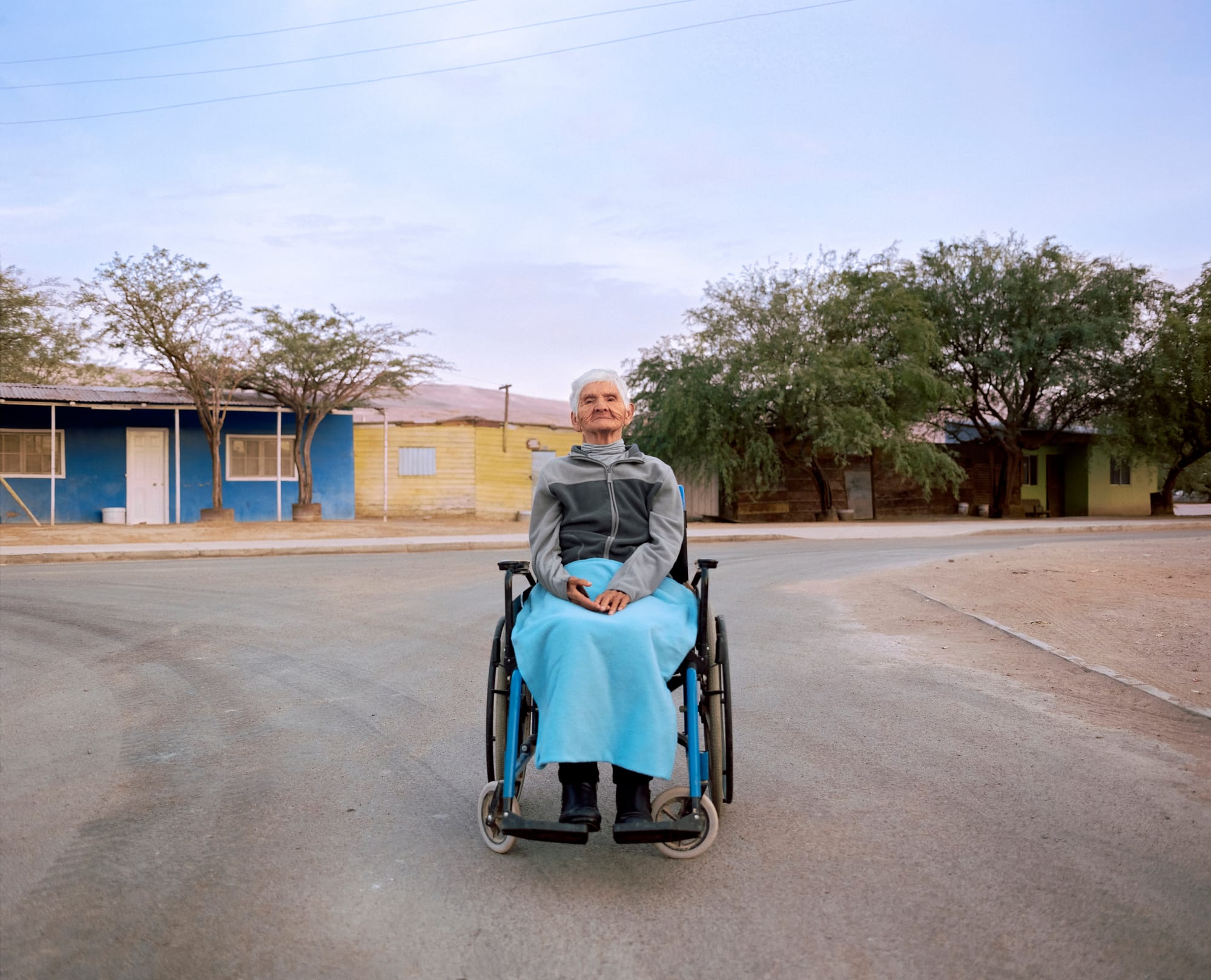 Gladys Suárez detiene su paseo diario para ser retratada al atardecer en las calles del pueblo aymara de Quillagua, Región de Antofagasta, Chile. Con 104 años de edad, Gladys es la última sobreviviente de la antigua salitrera Pedro de Valdivia (1903-1956). Hoy pasa sus últimos años en Quillagua, un poblado considerado el punto más seco del planeta (National Geographic, 2002) pues en los últimos 60 años apenas registra 0,2 milímetros de agua caída en promedio. | Gaspar AbrilotDivisión Chuquicamata, considerada durante décadas como la mina a tajo abierto más grande del mundo, se encuentra ubicada a 15 kilómetros de la ciudad de Calama, Región de Antofagasta, Chile. Originalmente explotada por los pueblos originarios de la zona, su nombre (de origen aimara) se relaciona con las comunidades chucas o chuquis, que trabajaban el cobre para confeccionar herramientas y armas. Su alto nivel de consumo de agua ha generado una grave sequía en la región, y su escasa fiscalización medioambiental ha causado desastres medioambientales que han afectado a los pueblos del bajo Loa. | Gaspar AbrilotCráneo y restos de vicuña en los alrededores de la laguna Los Patos, cercana a Ojos de Opache, una localidad situada a 11 km de la ciudad de Calama, Región de Antofagasta, Chile. En la laguna Los Patos, formada por aguas subterráneas que derivan del Loa, podemos encontrar una cueva con vestigios de antiguo arte rupestre que relatan el culto al agua de los primeros habitantes de la zona. Además en sus alrededores predomina una abundante fauna compuesta por vicuñas, zorros, tórtolas, jilgueros, zorzales, pato chunchurun y picaflor de la gente. Lamentablemente la grave crisis hídrica que atraviesa la cuenca del Loa, debido a la intensa sequía, el seco calor del desierto y el deterioro del ecosistema producto de la intensa producción minera, ha ocasionado que la fauna de este sector esté en serio peligro, causando la muerte de más de 5.000 animales al año. | Gaspar AbrilotProceso de lavado de ropa y optimización del agua en casa de Giorgina Soza en el poblado de Quillagua, Región de Antofagasta, Chile. Dos veces a la semana, y desde hace décadas, la comunidad aymara de Quillagua recibe agua de camiones aljibe que vienen del municipio de María Elena, distante a 93 km de Quillagua. Los cuatro estanques principales del poblado- de 40 metros cúbicos cada uno- abastecen durante una hora al día para que las familias puedan llenar los tambores de 200 litros que tienen en el hogar y poder tener agua con la cual realizar sus labores, cocinar, lavar ropa o bañarse. Este preciado y escaso recurso es usado y administrado por las familias de manera óptima. El agua para la lavadora es reciclada y luego destinada para llenar el inodoro. Si lavan la loza, el agua del enjuague es ocupada para regar las plantas del jardín. Hasta la más mínima gota de agua es ocupada de manera eficiente. | Gaspar AbrilotEl interior de la casa de Mariel Castro, ex-dirigenta de la comunidad aymara de Quillagua, Región de Antofagasta, Chile, es decorada con sus recuerdos, retratos de sus padres, trofeos de competencias en la antigua salitrera y figuras religiosas que la acompañan en el día a día, mientras pasa el tiempo en un pueblo que está en un lento proceso de despoblamiento. | Gaspar AbrilotMariel Castro, ex dirigente de la comunidad aymara, posa delante de su casa, minutos antes de que se corte la luz en el pueblo de Quillagua, Región de Antofagasta, Chile. Aparte de las problemáticas hídricas que aquejan a esta comunidad, también sufren de falta de electricidad. El Municipio de María Elena, distante 93 km de Quillagua, facilitó un generador con el cual pueden tener energía entre las 19:00 y 23:00 hrs. Mariel relata que llevan años de lucha constante con María Elena para poder mejorar sus condiciones de vida, pero es poca la solución que reciben: «Fuimos nosotros a reunirnos en esos años, pasadito el ‘83. Fuimos a una reunión nosotros porque este problema del valle es de años, problemas de agua y luz. Y llegamos allá, me acuerdo: “¿qué problema tienen ustedes?”. Y nosotras: “sabe, señor alcalde, tenemos problemas de agua, que es poca el agua que nos dan, la luz y esas cosas”. Nos quedó mirando a todos, movió la cabeza, se paró y nos dijo: “me sale mas barato comprar una caja de balas que invertir en ustedes”. Nosotros quedamos paralizados: “sí, tiene razón, mátennos altiro, pesque una pistola y nos mata altiro a nosotros y así se deja de calentar la cabeza”. Entonces es como mucho que una autoridad diga eso». | Gaspar AbrilotTambor de acumulación de agua, con una capacidad de 200 litros, en la casa de Mariel Castro, residente de Quillagua, Región de Antofagasta, Chile. Todos los días, entre las 12:00 y 13:00 hrs, se abren las válvulas de los tambores principales del pueblo. Durante ese horario, los residentes del poblado aymara de Quillagua se encargan de llenar los tambores que tienen en sus casas para poder tener agua con la cual cocinar, lavar ropa o bañarse durante el día. | Gaspar AbrilotRegistro del suelo seco y agrietado de las antiguas piscinas para crianza de camarones en el pueblo de Quillagua, Región de Antofagasta, Chile. Quillagua comenzó a secarse progresivamente hace más de 45 años, primero con las abducciones río arriba que buscaban proveer de agua potable y servicios sanitarios a la población urbana de la región, y luego con las extracciones mineras que agudizaron el problema. En la década de los `90 las ofertas por parte de la industria minera para que los quillaguinos vendieran sus derechos de agua eran constantes, pero la comunidad se negaba a vender. En 1997 todo cambió. El río loa sufrió una de las contaminaciones más graves de la historia de Chile y lo que pasó luego los científicos lo calificaron de “muerte biótica”. Los cultivos se perdieron y ni un solo camarón, pejerrey, pato o trucha, sobrevivió al ecocid