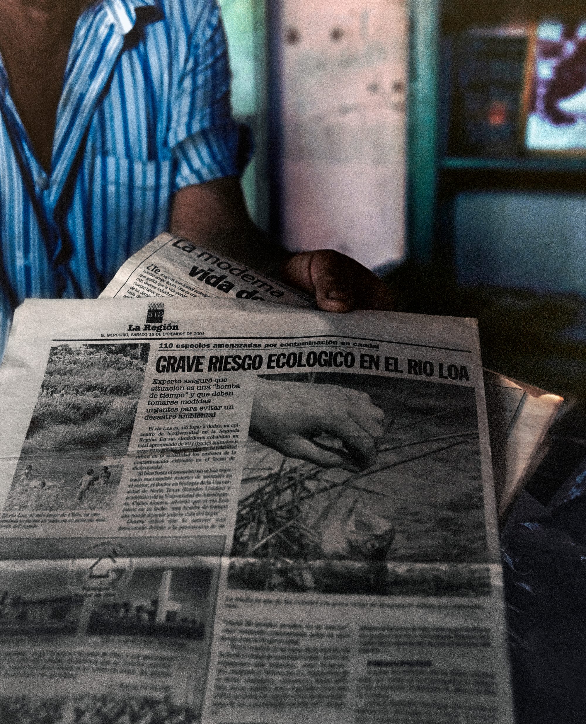 El río Loa -el más largo del país y el segundo de mayor longitud de América latina- nace en las faldas del volcán Miño, provincia de El Loa, Región de Antofagasta, Chile. Situado entre la Región de Tarapacá y la Región de Antofagasta, es el principal curso de agua del desierto de Atacama, creando una cuenca hidrográfica que supera los 33.570 km², siendo la mayor de todo el país. Es tal la importancia de este río, como generador de vida y zona limítrofe, que la cuenca es habitada desde el 1500 A.C. por comunidades indígenas, desde 1532 por la Colonia española, en 1809 por el Estado de Bolivia y en 1883 forma parte de Estado de Chile. Pero actualmente, y a lo largo de su peregrinaje de 440 kilómetros a través de quebradas, vados, comunidades y pueblos ancestrales hasta encontrarse con el Océano Pacífico, el río Loa está sufriendo una dramática crisis medioambiental. | Gaspar Albriot