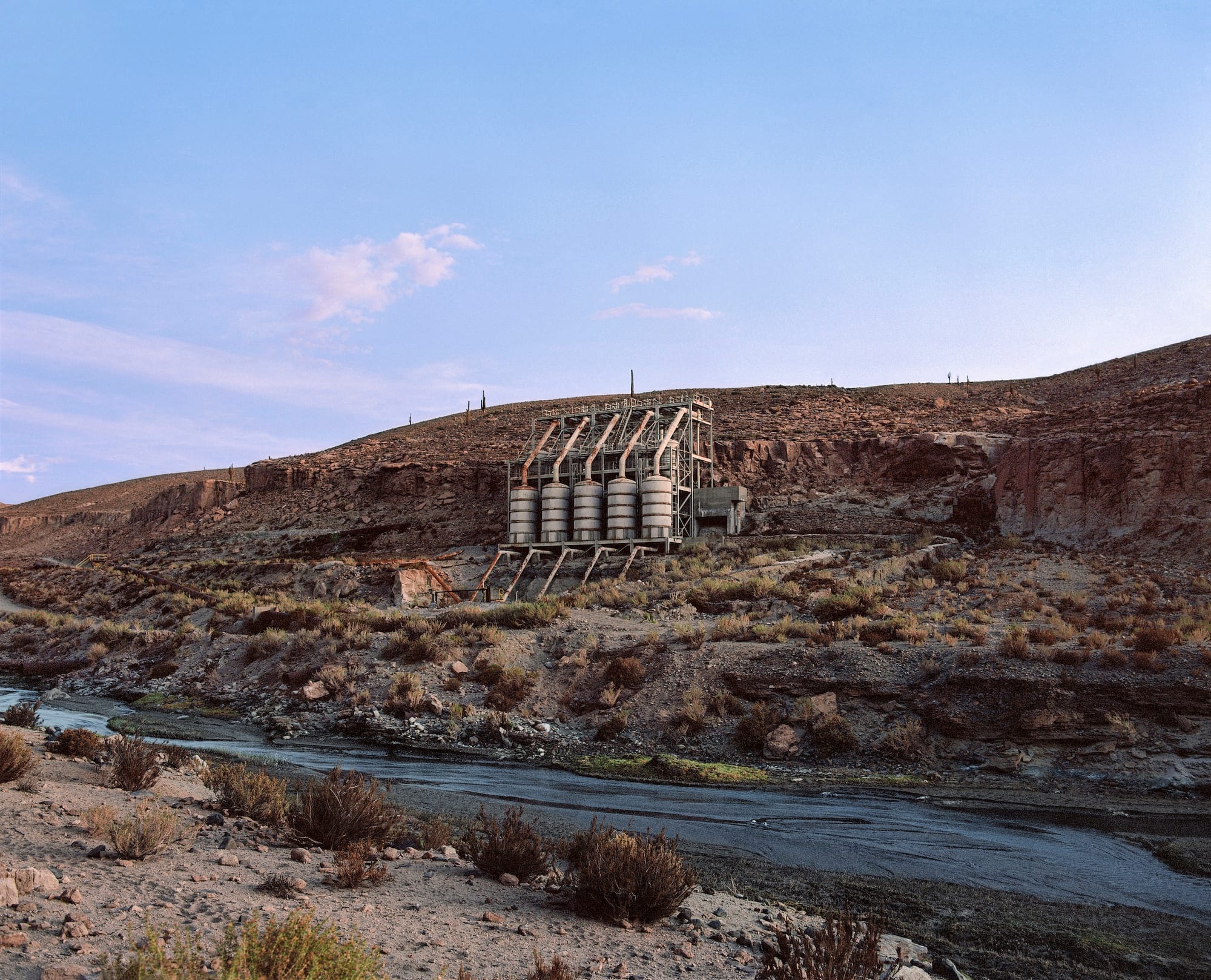 El estanque de acumulación CHILEX se encuentra en la naciente del río Salado, segundo principal afluente del Loa y cercano a la comunidad atacameña lickanantai de Chiu Chiu, Región de Antofagasta, Chile. Esta gigantesca infraestructura de abducción de agua (de casi 25 metros de altura) es propiedad de Codelco -empresa estatal dedicada a la explotación minera cuprífera- y es parte de un complejo sistema de extracción, trasvase, canalización y almacenamiento de agua para los yacimientos mineros cercanos a Calama. | Gaspar Abrilot