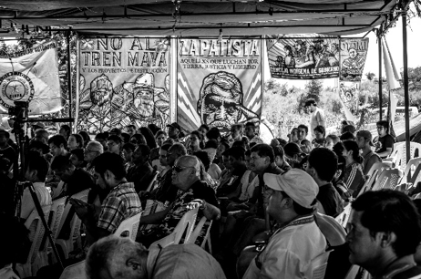 A lo largo de mesas de trabajo y paneles informativos, los pobladores del Istmo de Tehuantepec expusieron un sentimiento generalizado: el proyecto del Corredor Transístmico (o interoceánico) anunciado por el gobierno de Andrés Manuel López Obrador se pretende llevar a cabo sin tomar en cuenta el derecho a la autodeterminación de los pueblos indígenas sobre su territorio.