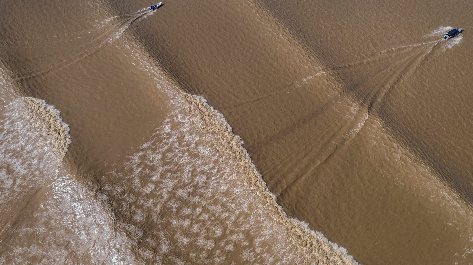 Las mareas arrastran cantidades increíbles de sedimentos mezclados en sus convulsiones, a veces cincuenta veces más que el agua que se mueve suavemente. Cada año, el Amazonas vierte 500 millones de toneladas de limo en el Atlántico, unas diez veces la masa de toda la arena y grava extraída anualmente en Estados Unidos. Un penacho de este material, fácilmente visible desde el espacio, se extiende cien kilómetros mar adentro y sube por la costa, pasando por la antigua desembocadura del Araguari, como posos de café esparcidos sobre cristal azul.