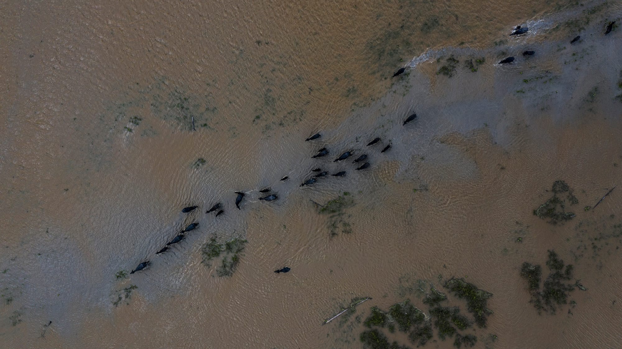 Con subvenciones del gobierno, los ganaderos empezaron a introducir búfalos de agua en la región en la década de 1980. Unos doscientos mil búfalos vagan ahora libremente. En comparación con el ganado, nadan mejor y comen más tipos de hierba. Vadean alegremente pantanos y arroyos poco profundos.