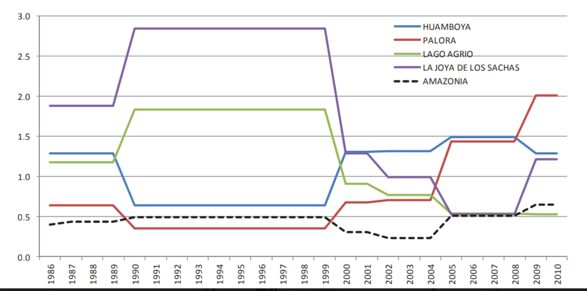 La pérdida de bosques nativos afecta a la biodiversidad de flora y fauna, especies endémicas y a los pueblos originarios, como los Shuar y Achuar, que tienen una estrecha relación con la selva. En esta situación se encuentra el cantón Palora. Más del 50% de su territorio pertenece al área protegida del Parque Nacional Sangay, declarado Patrimonio Natural de la Humanidad en 1983. Desde inicio de la década de los noventas, la deforestación se ha incrementado en forma continua como demuestra un estudio de Rodrigo Sierra, llamado ‘Patrones y factores de deforestación en Ecuador’ (se consolidan los resultados en la gráfica).