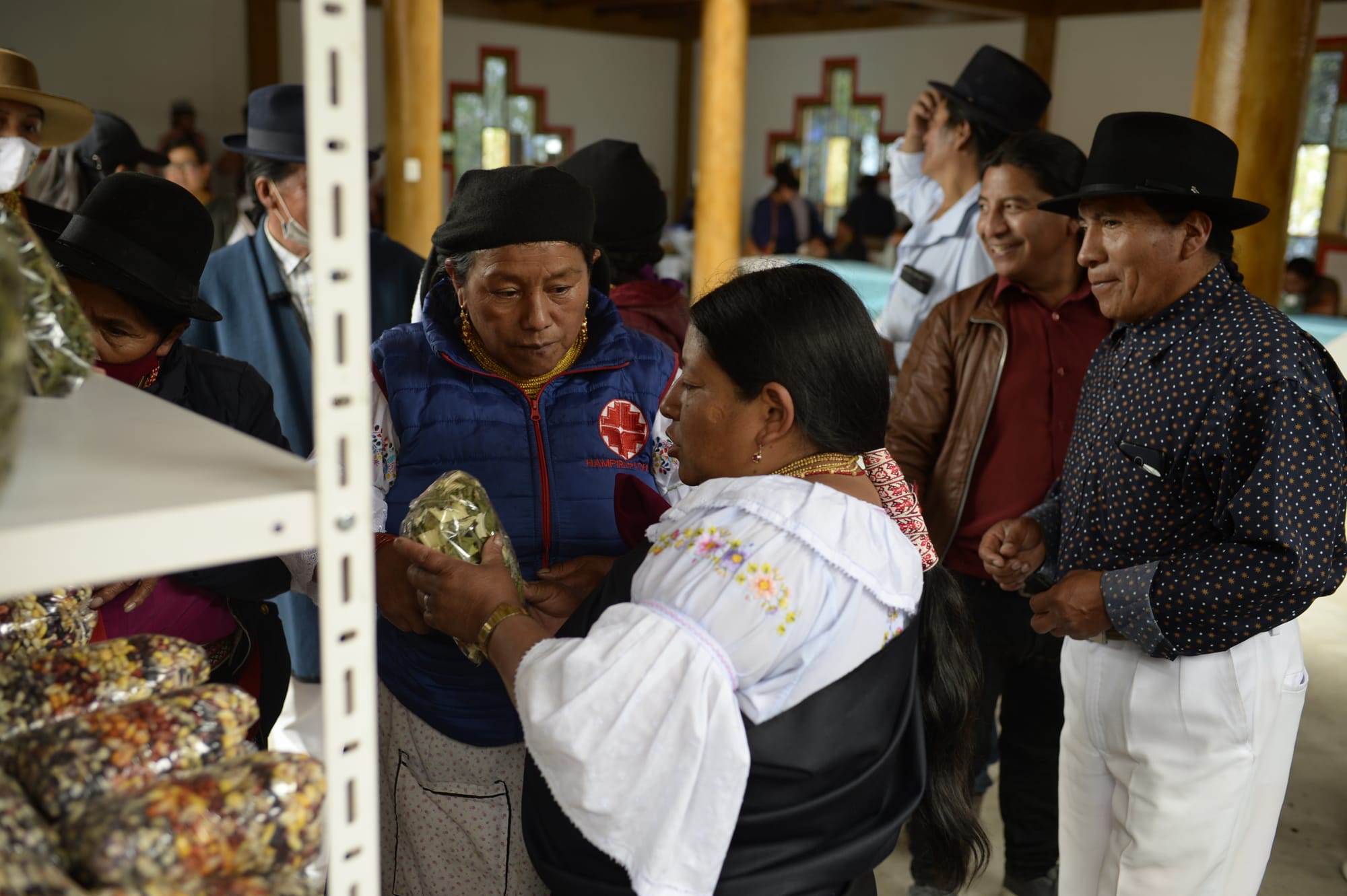 Desde que la pandemia por COVID-19 obligó al mundo a restringir los eventos públicos, esta es quizá la oportunidad más reciente que tienen las familias kichwas para encontrarse e intercambiar semillas, una de las prácticas vitales y ancestrales que sostienen su cultura. Hay música y alegría. Mesas rebosantes de alimentos. Hampiriypacha es el resultado de su organización como mujeres. Las mujeres celebran su esfuerzo junto a sus familias.
