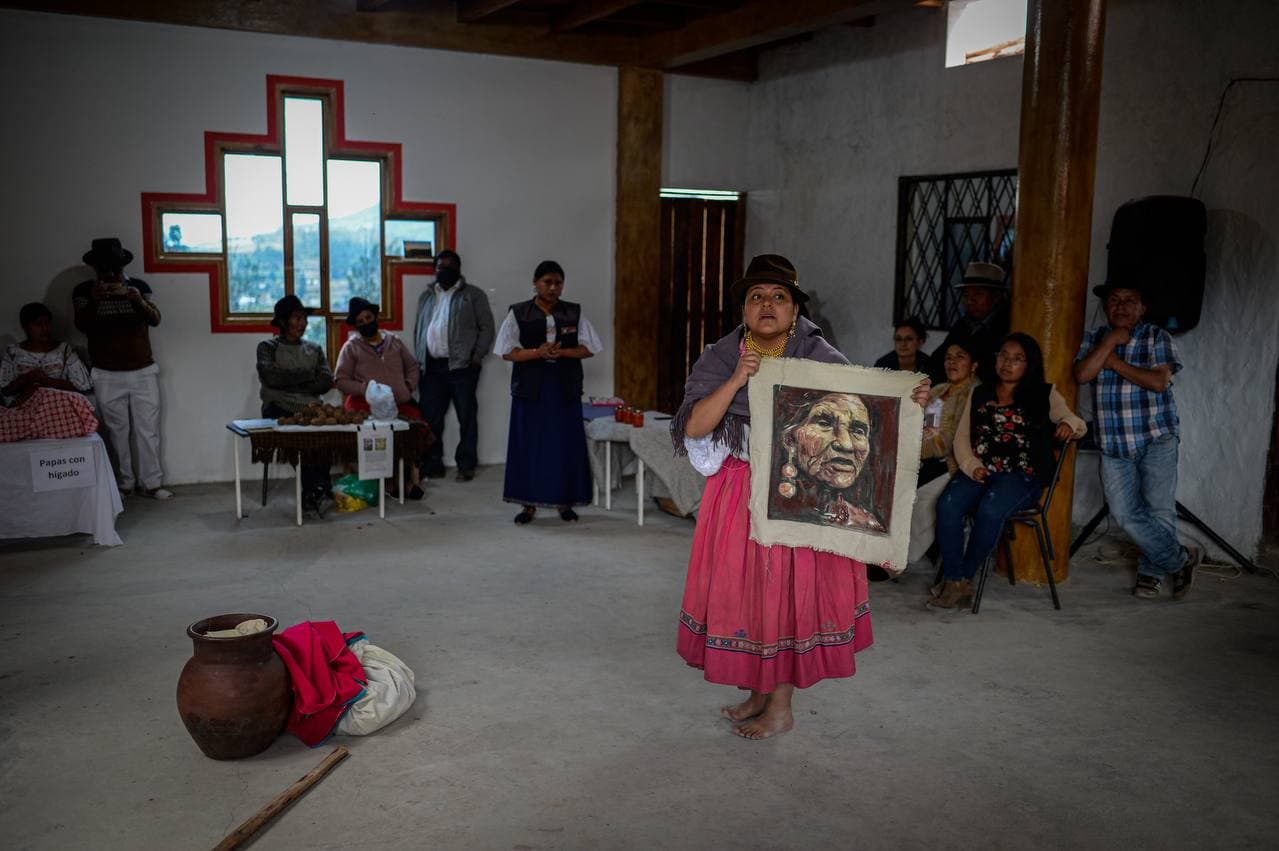 —Ustedes que tienen aquí un encargo, deben trabajar colectivamente, no individualmente. Acá mandamos como pueblos, como ecuatorianos para que hagan leyes. Por eso venimos a poner este mensaje: Todos somos responsables, y debemos hacer minga de trabajo. No vengan a avergonzarnos ni a nuestros hijos. Esta es nuestra petición a nombre de las mujeres. Traemos semillas para que se multipliquen.