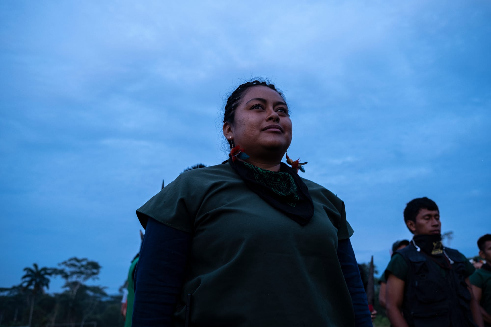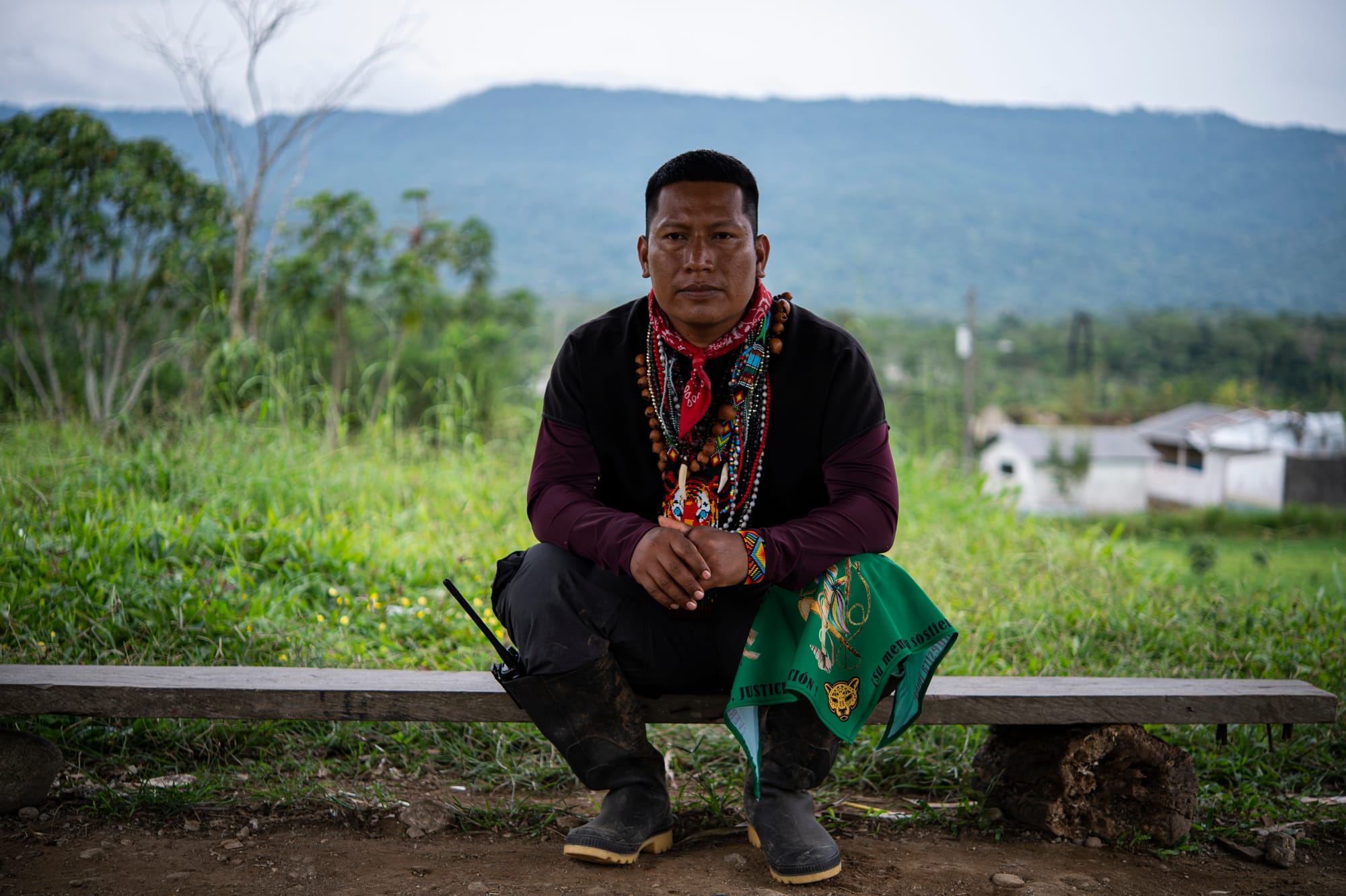 Cuando Wider Guaramag Umenda habla, su voz alcanza a cada árbol, pez, y niño de su territorio. A los 31 años, es padre de familia y presidente de la Comunidad A’i Cofán de Sinangoe. Viste el atuendo tradicional con orgullo, rodeado de collares de dientes de sajino y tigre. Sus decisiones las mantiene con firmeza pues está en juego la subsistencia de su pueblo.