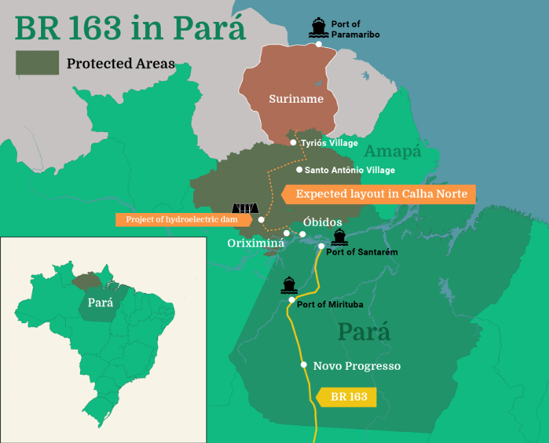 La extensión de la BR 163 fue mencionada por el Ministro de Economía, Paulo Guedes, como una forma de aumentar la competitividad de Brasil y reducir el tiempo de viaje a China.
