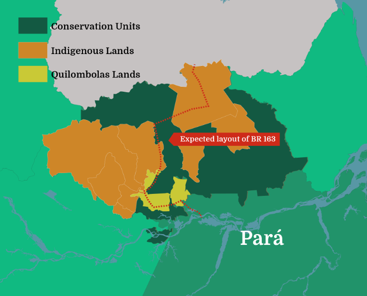 Aunque el trazado final de la carretera no está decidido, ésta atravesará fatalmente un enorme mosaico formado por zonas protegidas, además de tierras indígenas y quilombolas (territorios ocupados por negros que huyeron de la esclavitud).