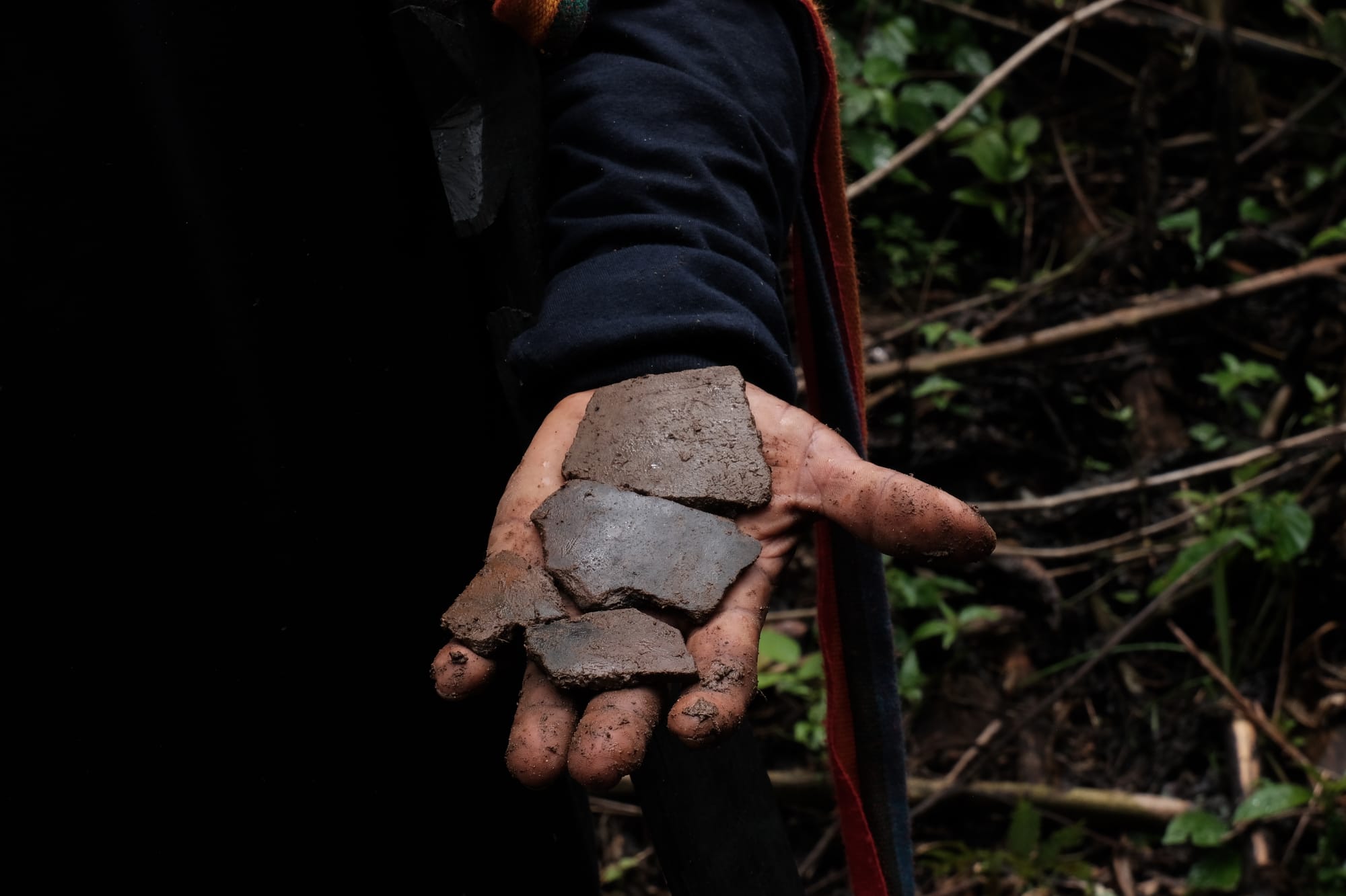 Antes de llegar al recinto de los grandes sabios, nos detenemos a observar los hallazgos de cerámica hechos por la comunidad. Era costumbre de los antiguos pobladores de Napo, usar urnas de cerámica enormes para enterrar a los muertos. En posición fetal, dentro de las urnas, se los regresaba al vientre de la tierra.