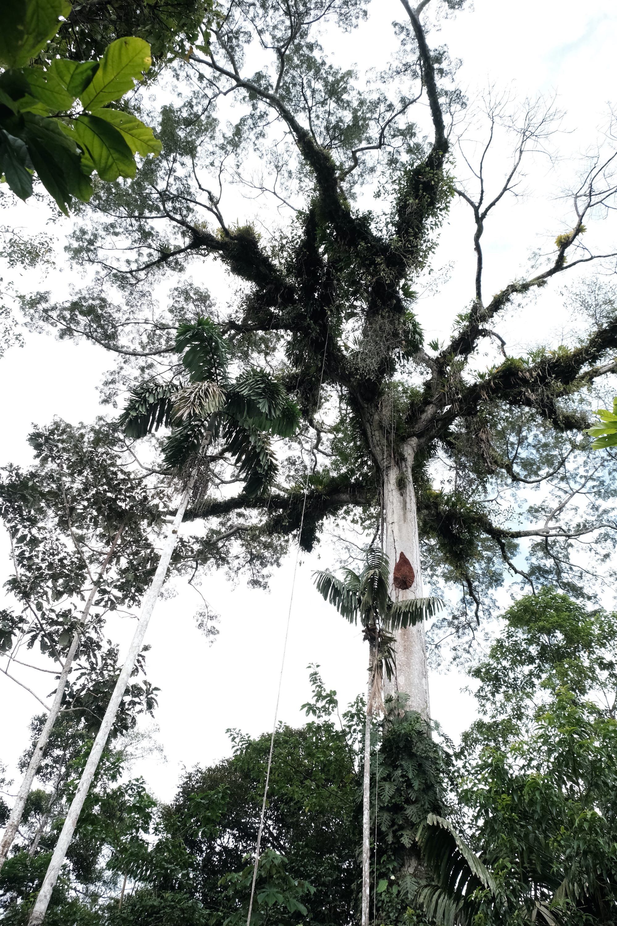 Pero el gran árbol es también la casa de la gran boa. Ricardo Antonio Agunda Grefa, dirigente de la comunidad, explica que han encontrado hasta seis rollos de piel de boa.