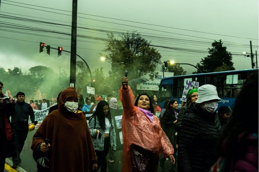 En el caso de las Mujeres Amazónicas pertenecientes a los pueblos y nacionalidades, su presencia viene consolidándose año con año. Fueron ellas quienes cargaron la pancarta con el rostro de Eduardo Mendúa, líder cofán asesinado. Desde la Amazonía, las voces contra el extractivismo y la contaminación ambiental son fuertes y se escuchan en escenarios internacionales como la COP o la Corte Interamericana de Derechos Humanos para exigir la garantía de derechos colectivos.