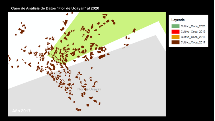 Los errores de identificación de áreas con cocales en los informes de UNODC/DEVIDA y DEVIDA han sido encontrados incluso en casos emblemáticos. La Comunidad Nativa Flor de Ucayali es conocida internacionalmente por las amenazas de cocaleros y narcotraficantes que mantienen en constante zozobra a la población de la etnia shipibo. Carla Limas, responsable SIG de la Asociación ProPurús, hizo una comparación de los informes de monitoreo de esta comunidad, usando los informes de UNODC/DEVIDA para el año 2017 y DEVIDA del 2018 al 2020.