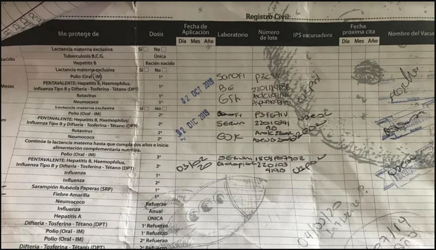 Solimar Luna tiene una hija de siete meses, a quien llevó a Cúcuta, Colombia, para iniciar el esquema de vacunas cuando la niña tenía dos meses de nacida. En un centro médico público colombiano le pusieron a su niña la primera dosis oral de polio y las dosis inyectadas de pentavalente, rotavirus y neumococo. Mientras esperaba a que le tocara la segunda dosis de esas mismas vacunas, decretaron el cierre de frontera y confinamiento por el COVID-19. Actualmente la bebé acumula tres dosis sin poner.