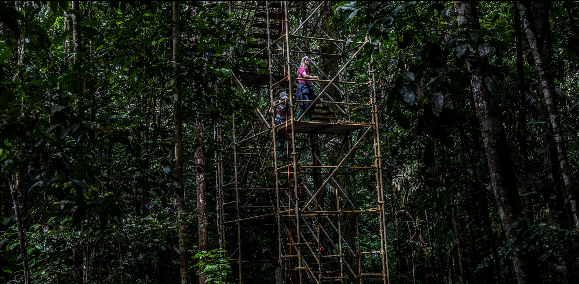 O destino da Amazônia está na mente de Gatti enquanto ela sobe em uma torre de treliça na floresta do Tapajós - um dos pontos de referência que seus pilotos sobrevoam ao coletar amostras de ar. A estrutura metálica chacoalha e range enquanto ela sobe. No convés, 15 andares acima do solo, ela contempla a floresta que se estende em todas as direções até o horizonte. Ela parece imaculada. Mas ela diz que está sofrendo.