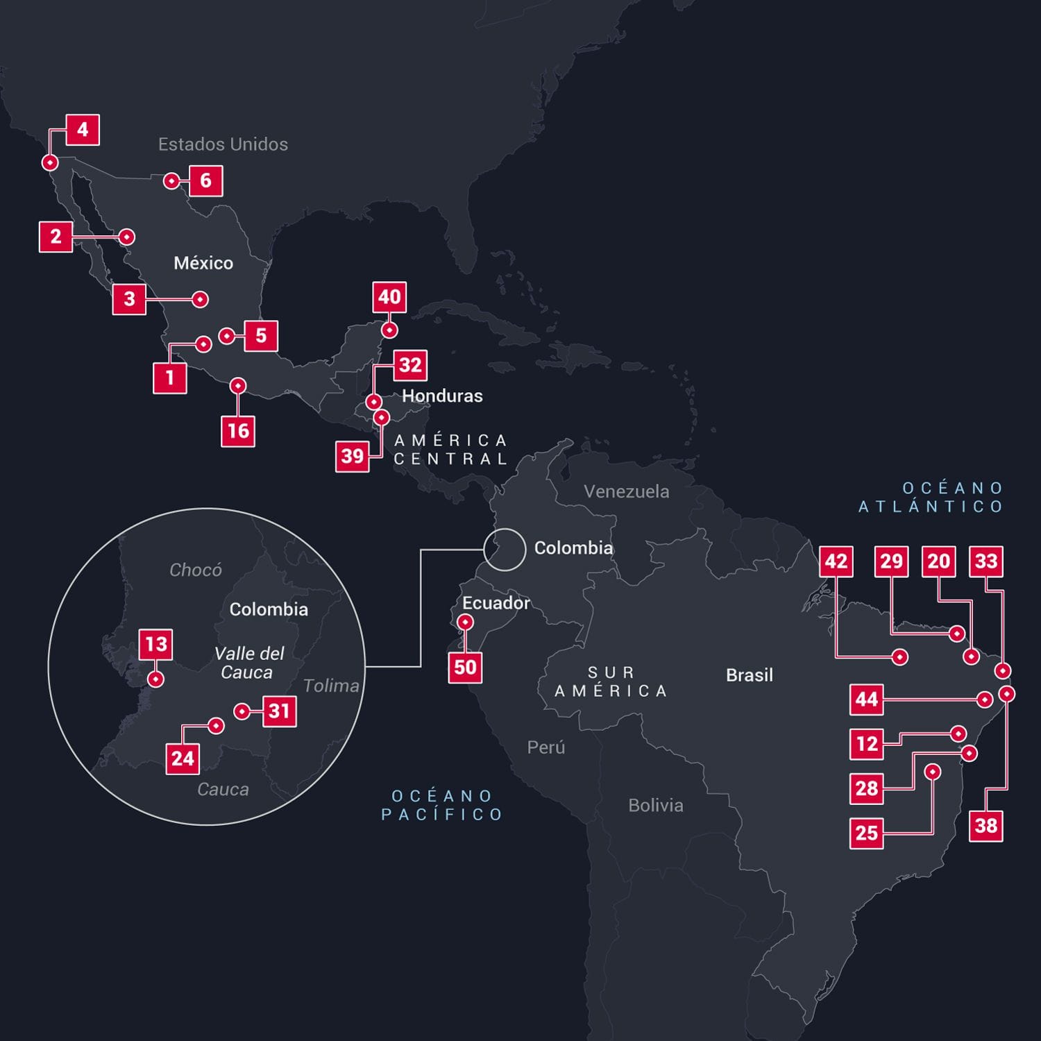 Mas isso não significa que todas as áreas da América Latina estejam em risco. A lista revela padrões ou áreas que requerem mais atenção do que outras, desde o Valle del Cauca, na Colômbia, com três cidades na lista, aos pontos turísticos mexicanos, onde houve um aumento dos homicídios, passando pelo Equador, que infelizmente entrou no ranking pela primeira vez, até o nordeste do Brasil, onde se concentra a violência do país.