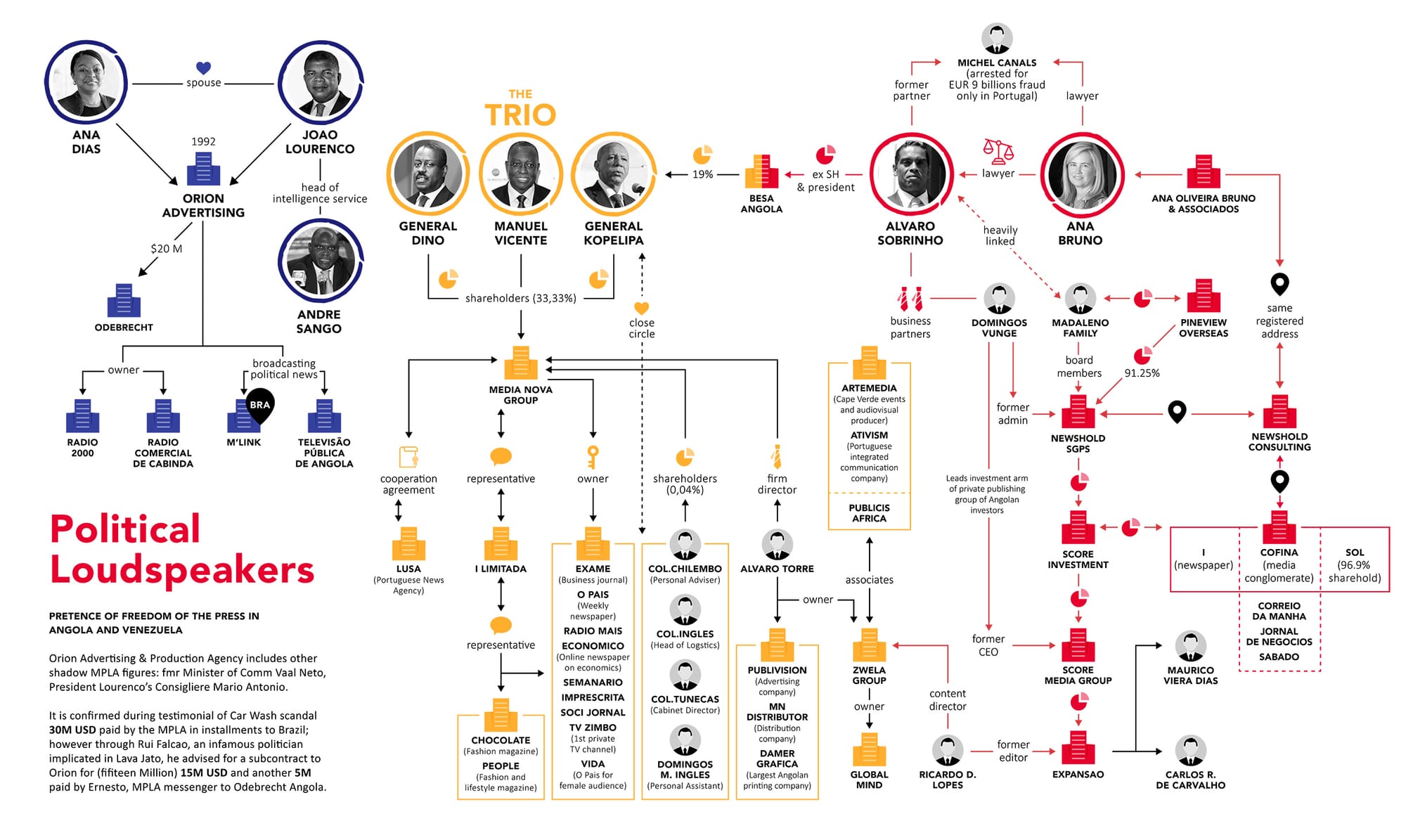 Há uma série de tópicos que emergem disso. O primeiro é que o proveito não ficou apenas na família, mas em todos os altos níveis do partido governante MPLA, incluindo pessoas como Manuel Desant, generais Dina e Kopelipa, José Carlos de Castro Paiva, Francisco José Lemos de Maria e Joaquim Duarte da Costa David, para citar apenas alguns. Embora o sucessor dos Santos, o presidente João Lourenço, tenha lançado uma guerra pública contra a corrupção, há três principais motivos para isso: (1) ele próprio faz parte da elite do MPLA, que tem se beneficiado enormemente de negócios financeiros corruptos ou, na melhor das hipóteses, não transparentes; (2) a sua luta contra a corrupção tem sido um meio de reprimir os inimigos políticos e futuros rivais; (3) as suas acusações e incriminações contra membros da família dos Santos são exatamente para inibir qualquer possibilidade de surgimento de uma dinastia política de discípulos do pai.