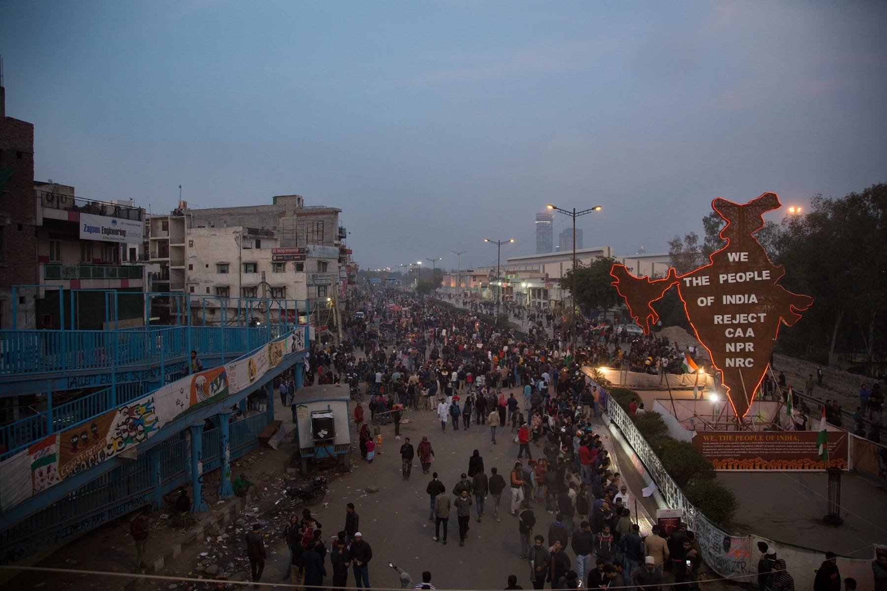 O coração desses protestos foi uma área muito unida, de maioria muçulmana, na zona leste de Delhi, chamada Shaheen Bagh, o “Jardim do Falcão”. Centenas de mulheres se reuniam ali todos os dias, onde montaram cozinhas coletivas e onde estudantes organizaram grupos de voluntários para dar apoio a manifestações pacíficas, que chegaram a contar com mais de 100 mil pessoas.