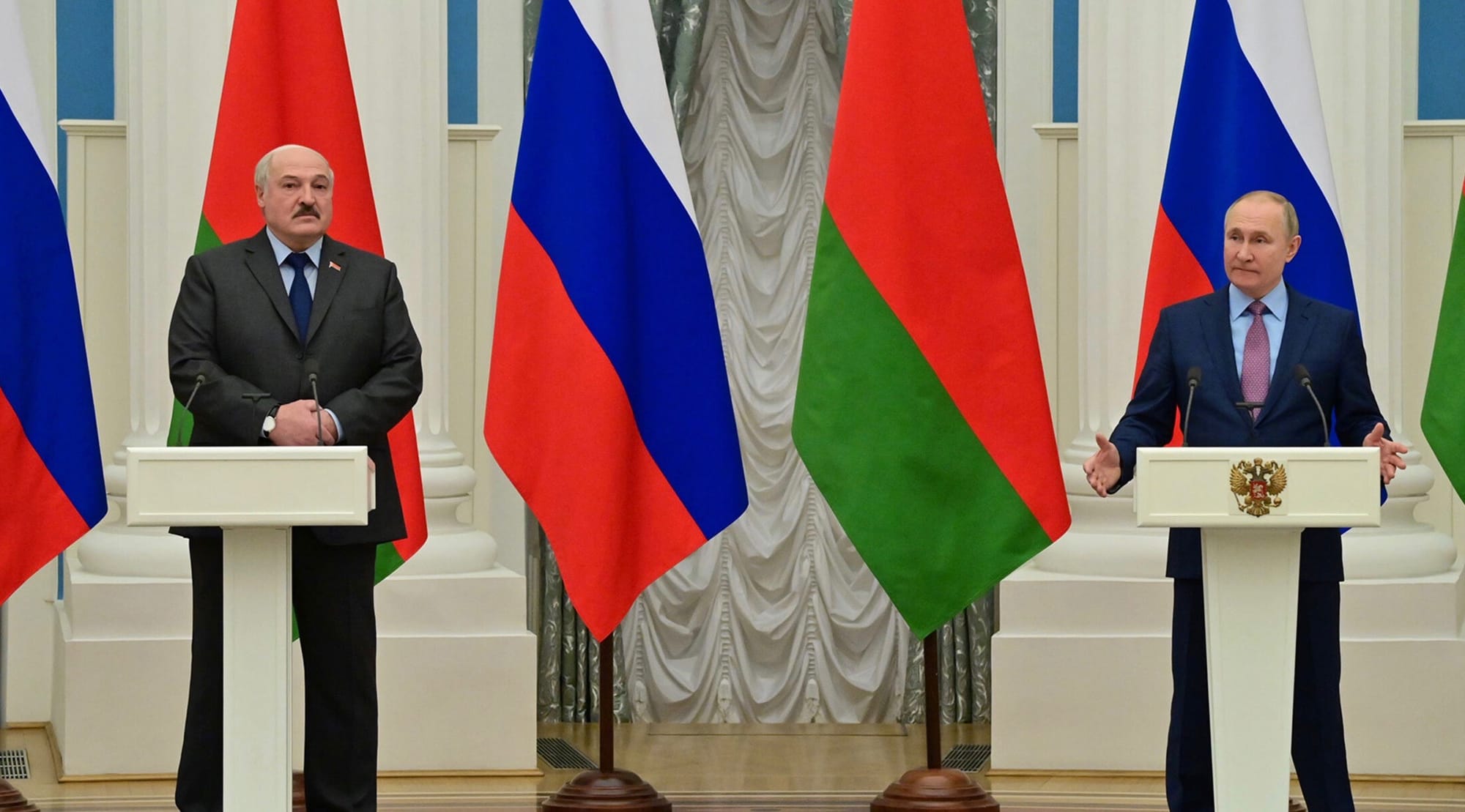 Лукашенко упорно пытается делать вид, будто ничего не происходит. Но поскольку просто отмалчиваться в этой ситуации он не может, ему приходится демонстрировать настоящие чудеса словесной эквилибристики. Он говорит, что не планирует втягиваться в конфликт и что белорусских войск в Украине нет. Но сразу же отмечает: “Если это будет необходимо Беларуси и России, они будут”. Он утверждает, что никакой войны с территории Беларуси не идет, но в той же речи признает, что ракетные удары все же наносились. Общаясь с прессой, Лукашенко изображал удивление тем фактом, что Беларусь считают участником конфликта - он списывал это на козни мирового сообщества.